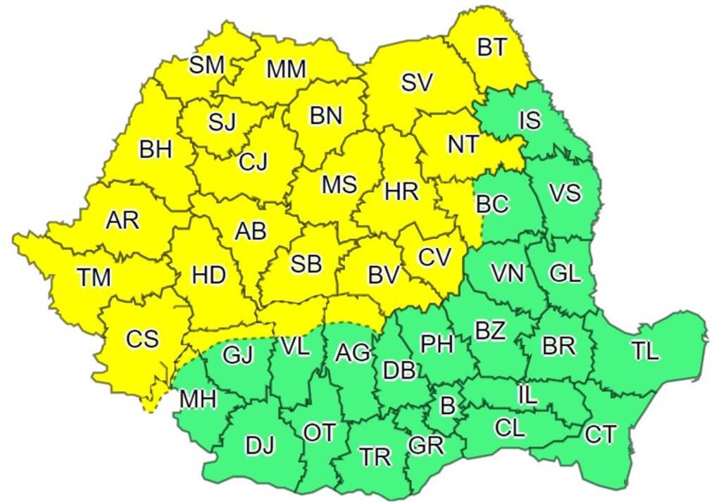 Administraţia Naţională de Meteorologie a emis, joi dimineaţă, mai multe atenţionări şi avertizări de vreme rea, care vizează şi judeţul Arad.