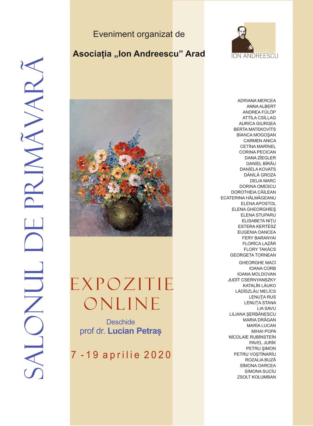 Expoziția “Salonul de primăvară” era programată anul acesta cu începere din data de 7 aprilie și până în 19 aprilie, în Sala Clio a Muzeului de Artă Arad, dar din motive evidente ale situației actuale, s-a mutat în mediul online.