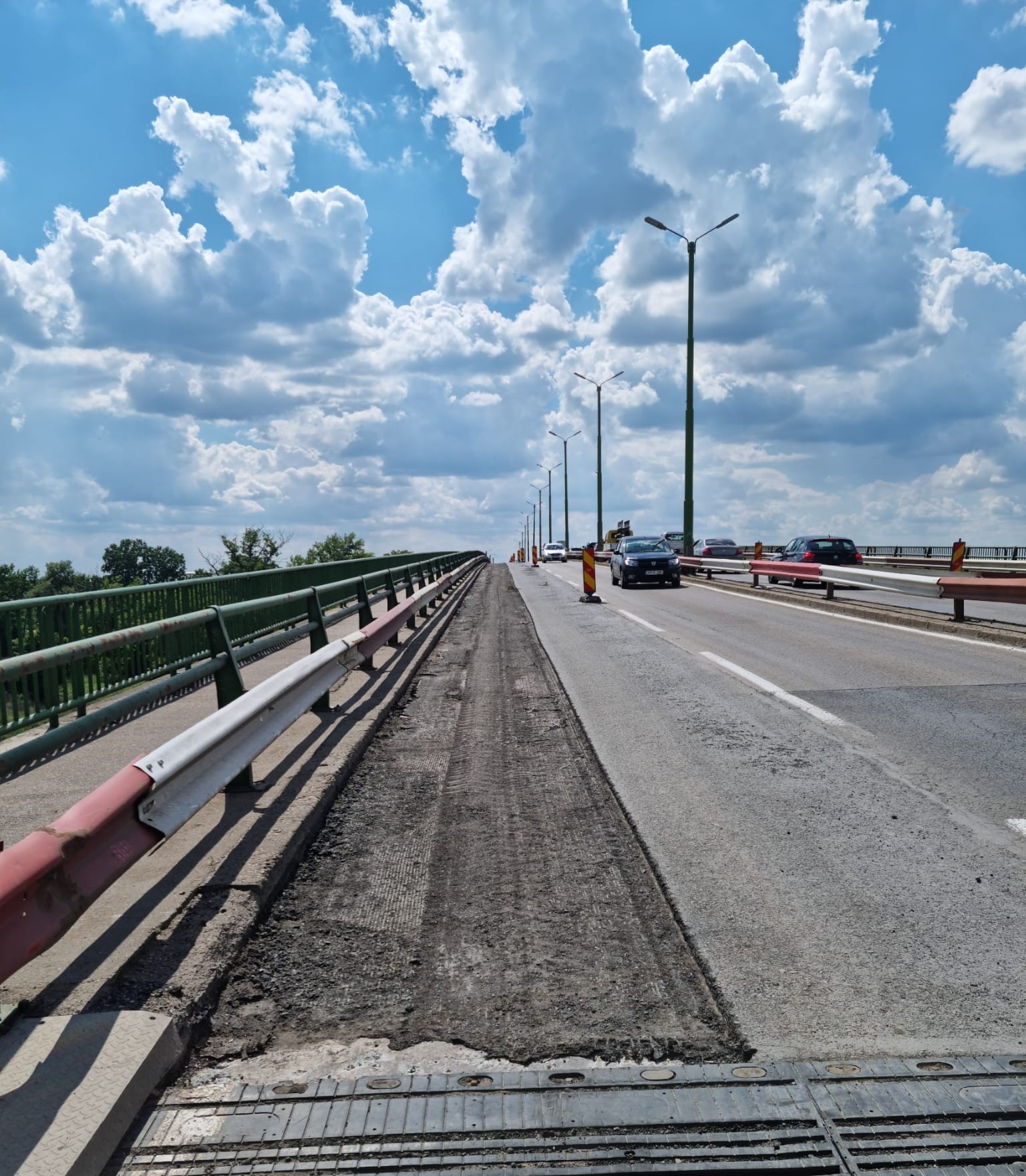 Porțiuni din pod au fost decapate pe ambele sensuri de mers, pentru că s-au descoperit zone în urgentă nevoie de reparații, care nu ar mai fi putut aștepta până la punerea în mișcare a proiectului pentru pod, aflat doar la stadiul de DALI.