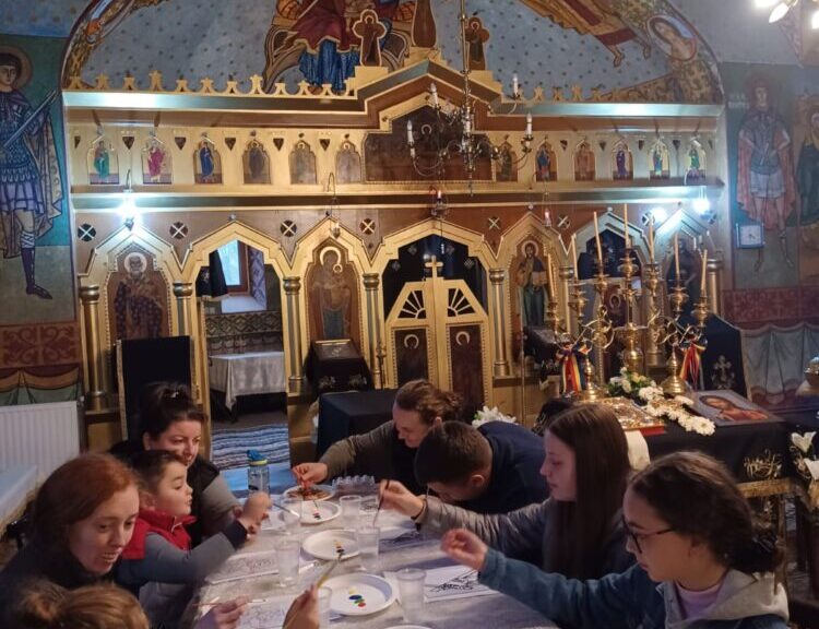 Aşa a început atelierul de pictură pe sticlă organizat de Grupul Catehetic „Sfântul Efrem” al Parohiei Ortodoxe Păiușeni, cu prilejul participării la concursul național catehetic „Tinerii și vârstnicii să laude numele Domnului”. Sub îndrumarea preotesei Romina Oprea, cei opt copii care au participat la atelier au realizat atât icoane specifice perioadei pascale – precum Sfânta Cruce, Mântuitorul Iisus Hristos -, cât şi icoane reprezentând Răstignirea Mântuitorului și Învierea Domnului. Pe parcursul realizării icoanelor pe sticlă, copiii au fost învățați despre tehnica realizării icoanei în acest mod, culorile folosite, iar mai apoi pașii pe care trebuie să îi parcurgă în realizarea acestora.