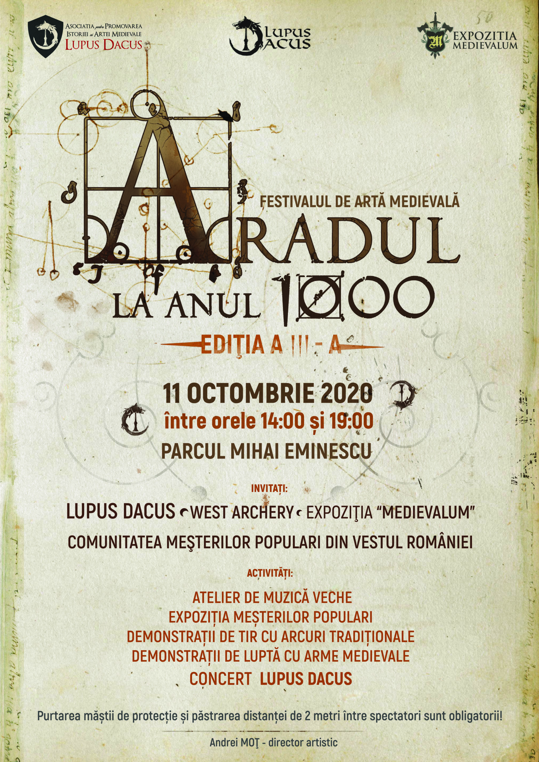 În cadrul Festivalului de Artă Medievală „Aradul la anul 1000”, purtarea măștii de protecție și păstrarea distanței de doi metri între participanți sunt obligatorii, conform regulamentelor aflate în vigoare.