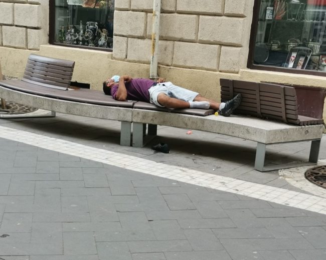 Luni dimineață, strada Mețianu arăta așa cum a surprins-o o arădeancă. C.H. a postat imaginea pe rețeaua de socializare Facebook și a adăugat la poză următoarele explicații: „Strada Mețianu – Raiul boschetarilor. Trec zilnic pe pietonala Mețianu, de câteva ori, de vreo cinci ani, de când m-am mutat la Piața Catedralei (întâmplarea face să am și locul de muncă în zonă). Dacă acum, să zic, doi – trei ani mai era cumva cu boschetarii și țiganii care își făceau veacul pe stradă, de câteva luni (după perioada de izolare) e ceva de nedescris. Grupuri de oameni ai străzii stau pe bănci, beau, își fac nevoile pe unde apucă și, dacă îi prinzi în toane proaste, te înjură (cum, de altfel, am pățit eu azi dimineață). Oare domnii de la Poliție, care au birou destul de aproape de zona cu pricina, nu ar putea să se plimbe puțin pe acolo, să vadă ce frumos e? Las doar o poză, nu am avut curaj să îl fotografiez și pe <domnul> drogat/ beat care urla într-un mare fel”.