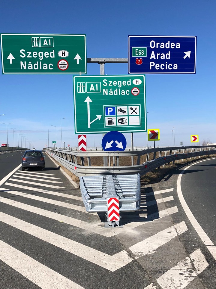 ARAD. Direcţia Regională de Drumuri şi Poduri Timişoara continuă investiţiile pentru protejarea participanţilor la trafic. În ultimele zile, drumarii au montat pe autostrada Nădlac-Arad-Timişoara mai mulţi atenuatori de impact, sisteme care protejează pasagerii autovehiculelor în cazul în care maşinile părăsesc partea carosabilă. „Echipele care montează atenuatorii de impact pe autostrada A1 se află pe sectorul Arad-Timişoara. Amortizoarele au fost deja montate pe tronsonul A1 Nădlac-Arad. Reamintim că aceste sisteme se montează la ieșirile din nodurile rutiere și la intrările în spațiile de servicii, cu scopul de a proteja pasagerii vehiculelor în momentul unei eventuale părăsiri a drumului și a ciocnirii cu un obiect rigid aflat în afara părții carosabile”, spun reprezentanţii DRDP Timişoara.