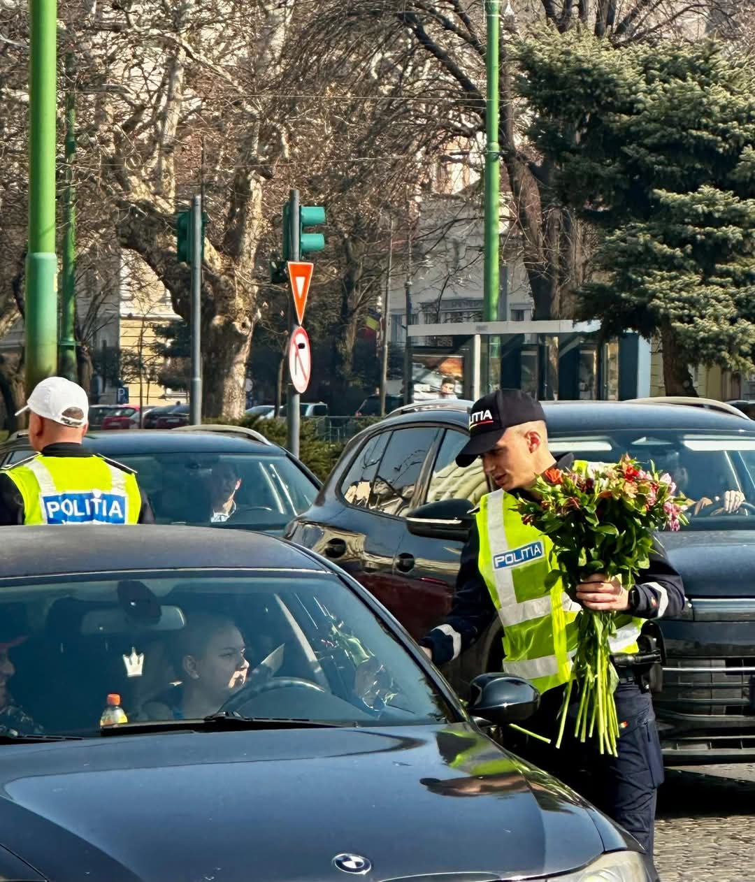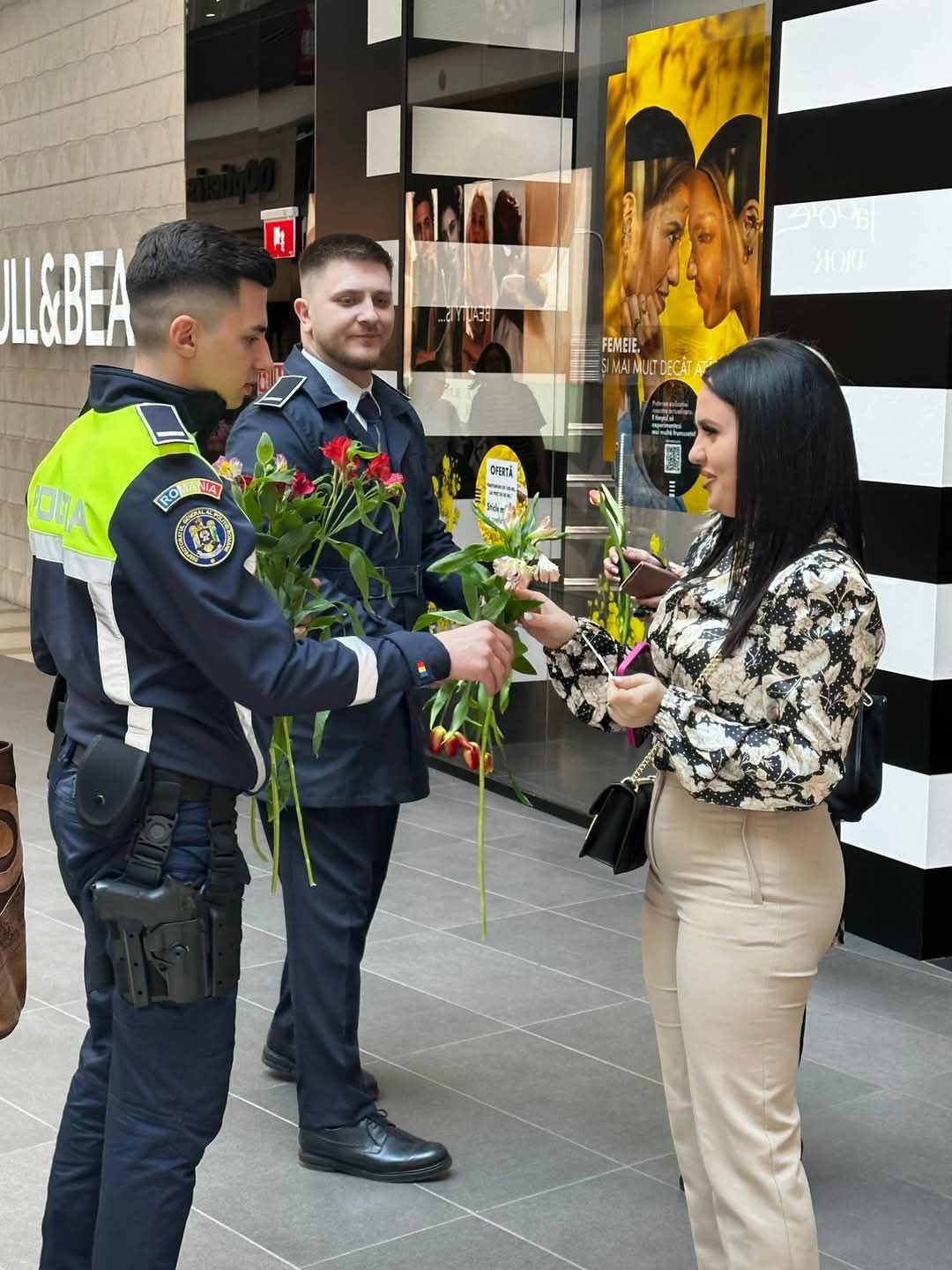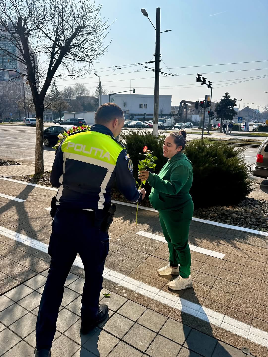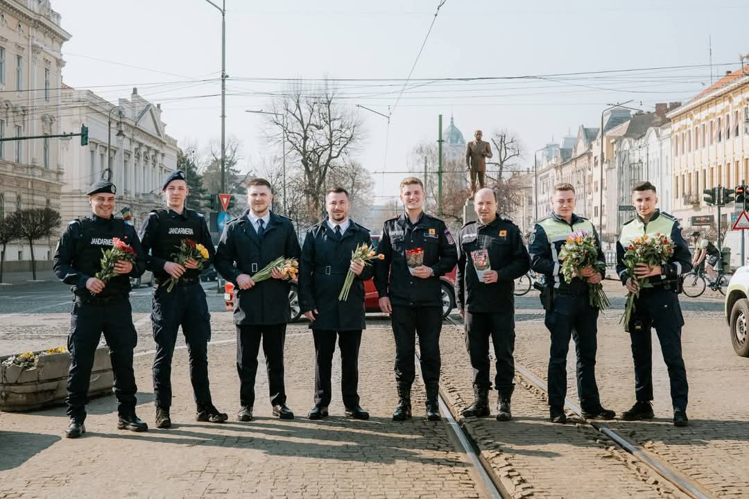 Aceștia au oferit flori doamnelor și domnișoarelor întâlnite în trafic și într-un centru comercial din municipiul Arad. Prin aceste gesturi simbolice, aceștia spun că doresc să transmită tuturor doamnelor și domnișoarelor „o primăvară frumoasă, să fiți mereu iubite și ocrotite. La mulți ani!”.