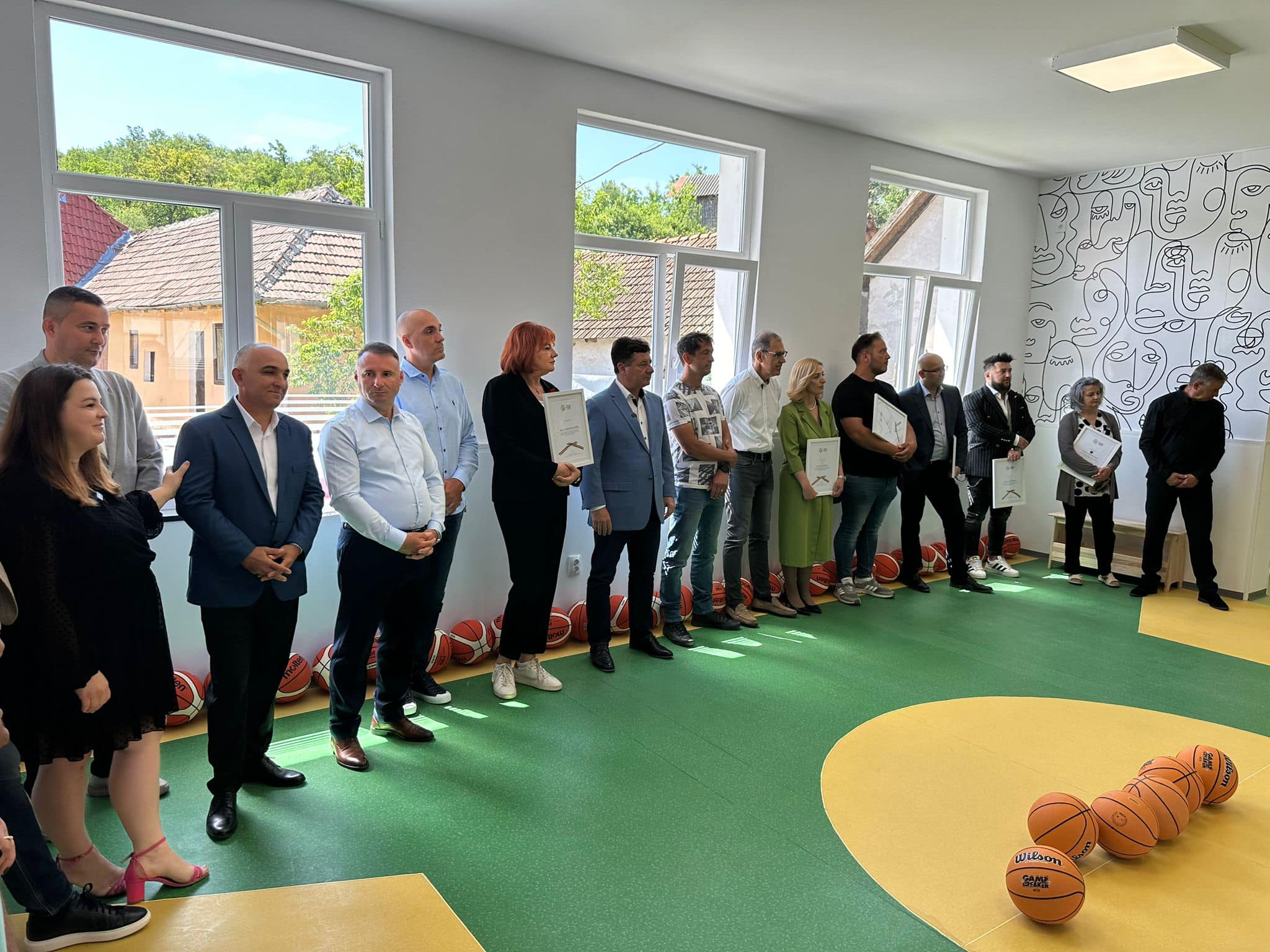 Primii copii au și aruncat la coș, iar autoritățile locale au fost gazde primitoare pentru personalitățile din mediul sportiv și de afaceri care au inaugurat prima sală de sport din satul Nadăș!