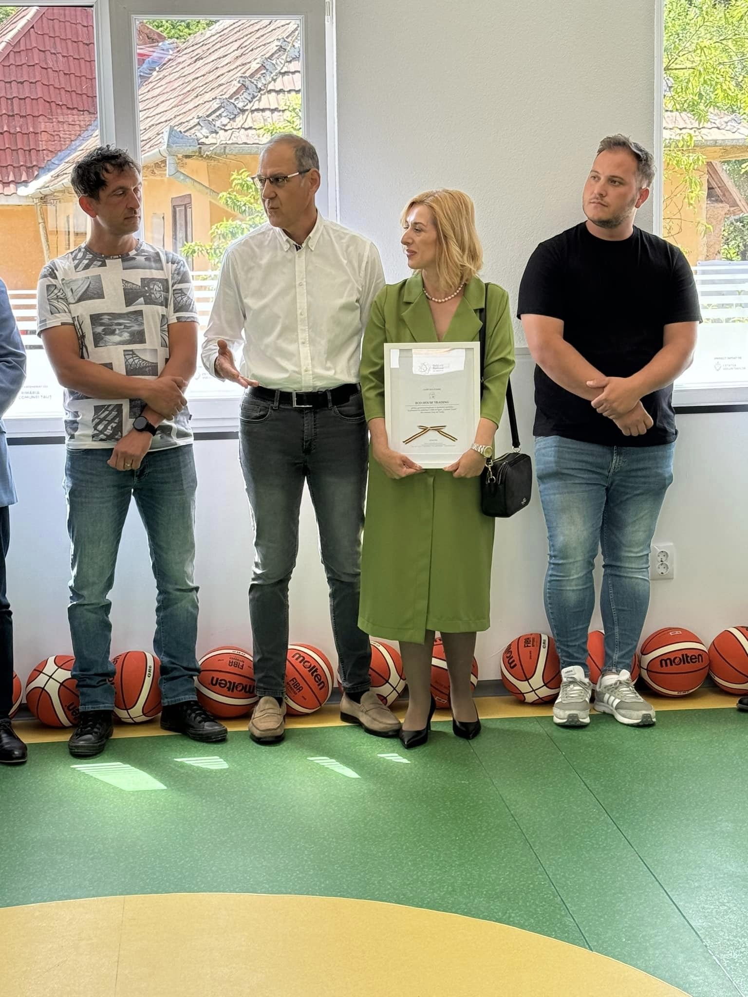 A fost prezentă la tăierea panglicii și cea care dă numele modernei săli de sport din Nadăș, Carmen Tocală. Aceasta s-a implicat activ în proiect, FR Baschet susținându-l cu diverse materiale.
