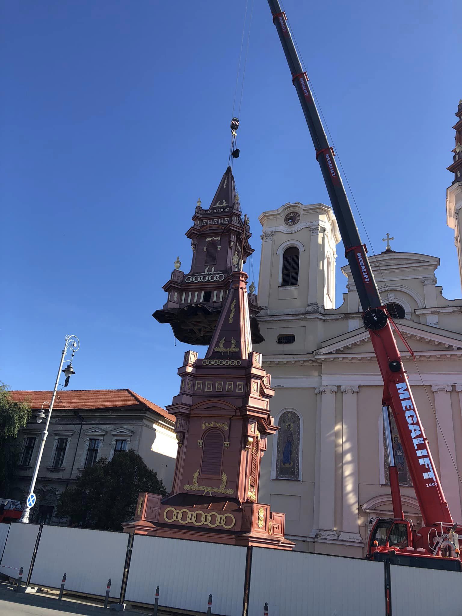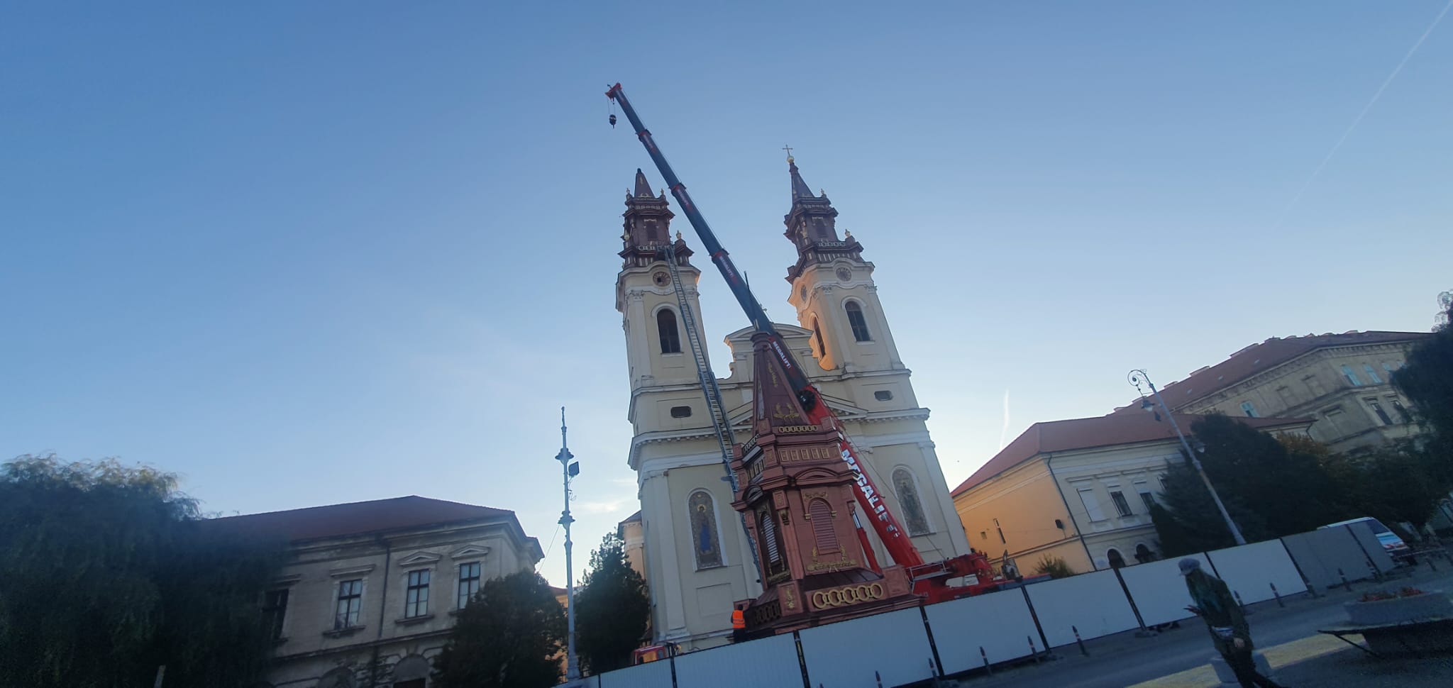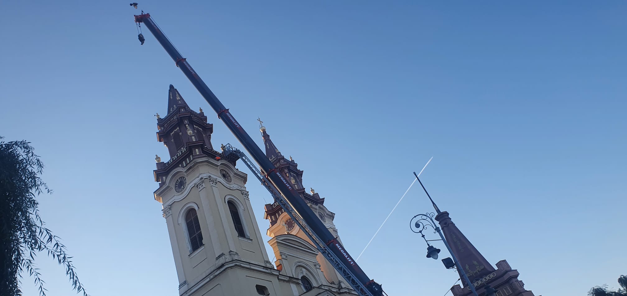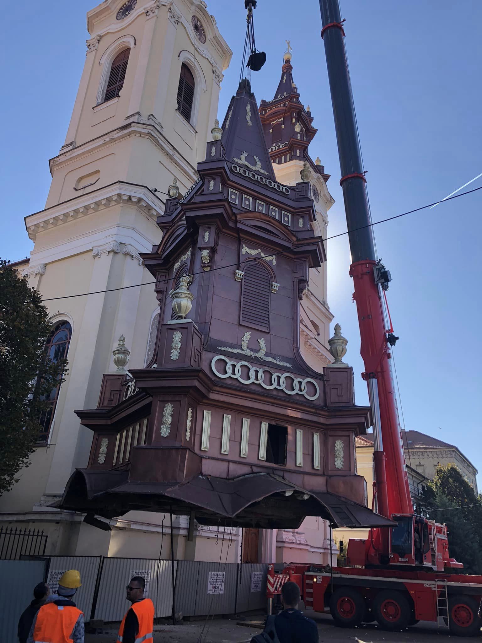 Ieri, încă de dimineață, Piața Catedralei era dominată de macaraua imensă care a făcut rocada între turele bisericii, spectacolul ingineresc fiind admirat atât de vânzătorii din piața pe cale de dispariție, cât și de trecători.