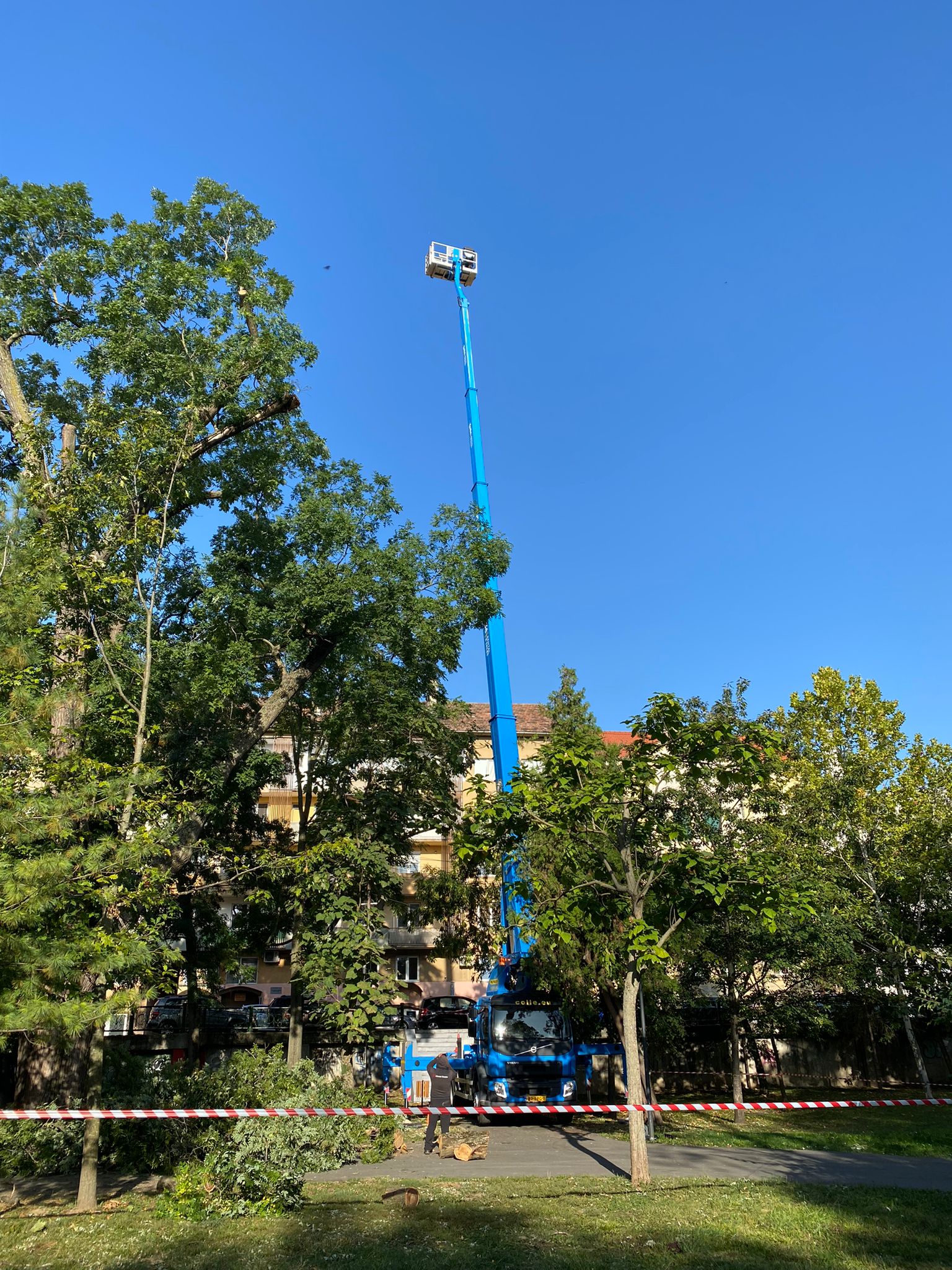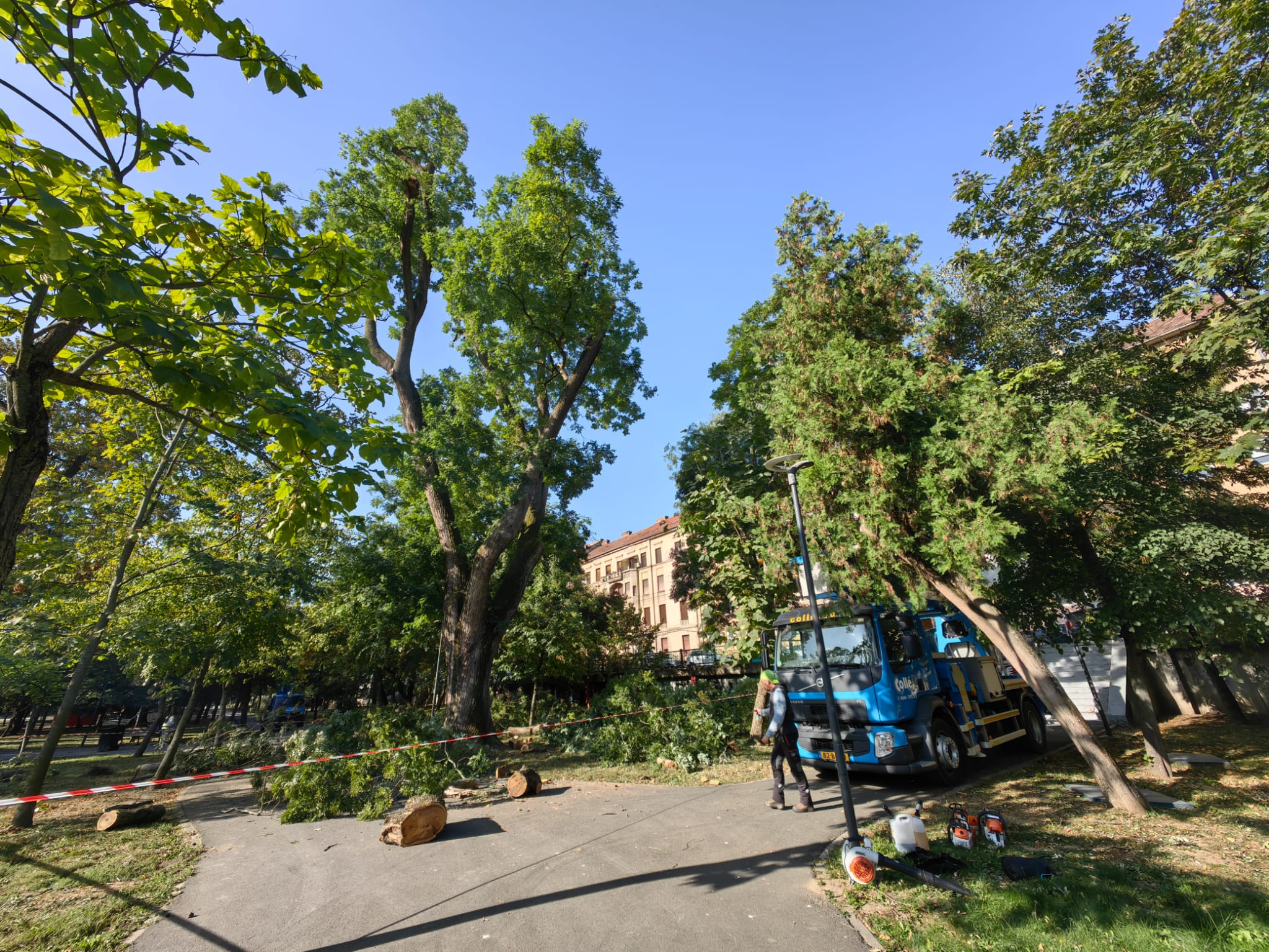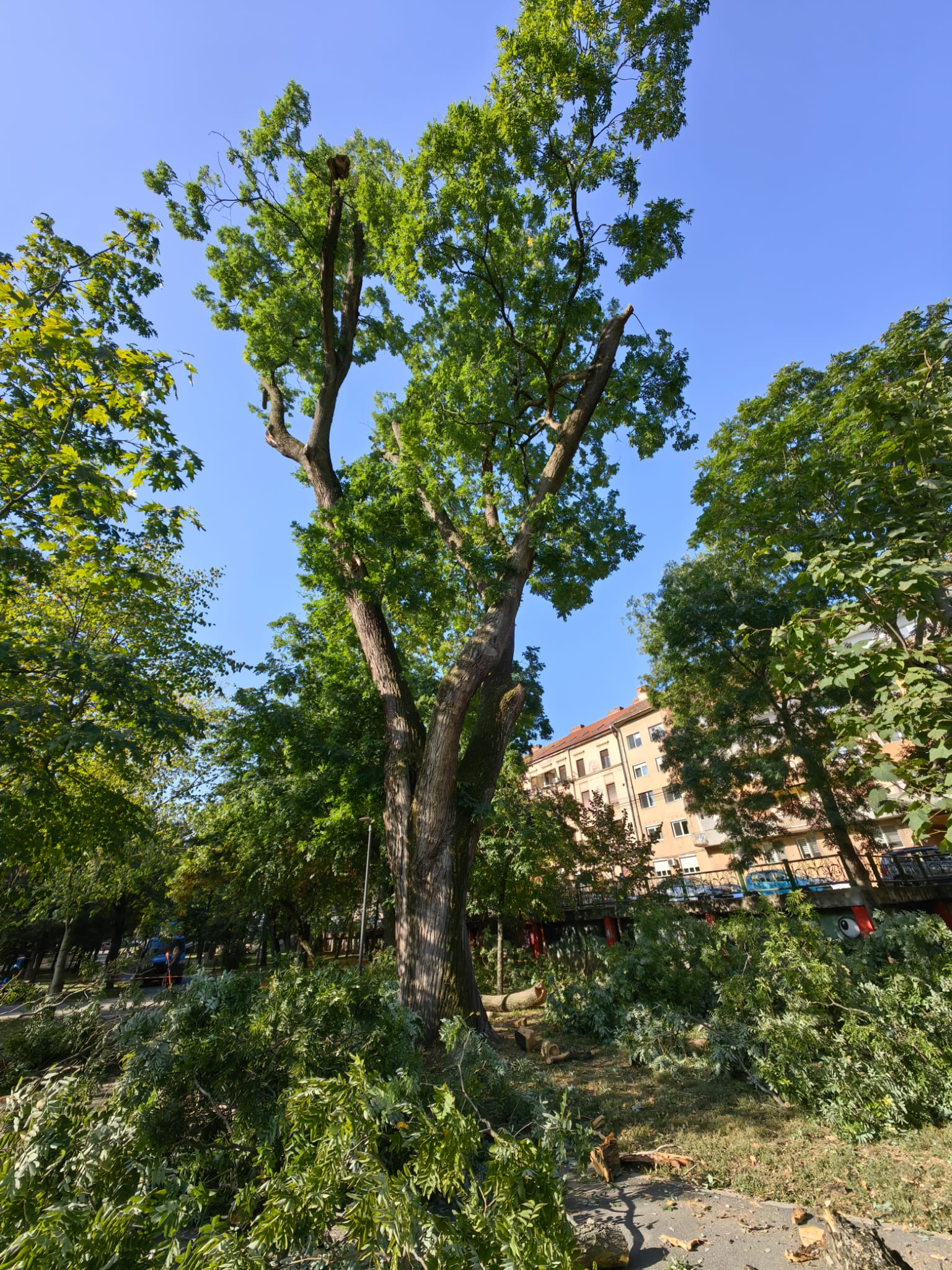 Firma care a efectuat, în urmă cu două săptămâni, măsurători cu rezistograful la doi arbori seculari din municipiu, a pus în practică soluțiile propuse pentru punerea lor în siguranță. După ce săptămâna trecută s-a lucrat la stejarul din Parcul Copiilor, luni a fost finalizată intervenția și la salcâmul japonez din Parcul Eminescu. Cosmin Truță, președintele Asociației Arboriștilor din România, a adus special pentru această intervenție o autoscară de dimensiuni mari, cu nacel, dată fiind înălțimea arborelui. Trei zile s-a lucrat la copac, care, în momentul de față, nu mai reprezintă un pericol pentru trecători. Dar iată în ce a constat intervenția: “Am efectuat o reducere de siguranță la coronament mai mult de 50 la sută. Am redus tensiunea din zonele care erau fisurate și de pe extremități și chiar dacă sunt zone care mai sunt cu bureți, ar trebui să mai reziste doi-trei ani. Dar acum îl lăsăm pe el să vedem ce face mai departe, iar în caz de nevoie vom interveni acolo unde este necesar”, a explicat Cosmin Truță.