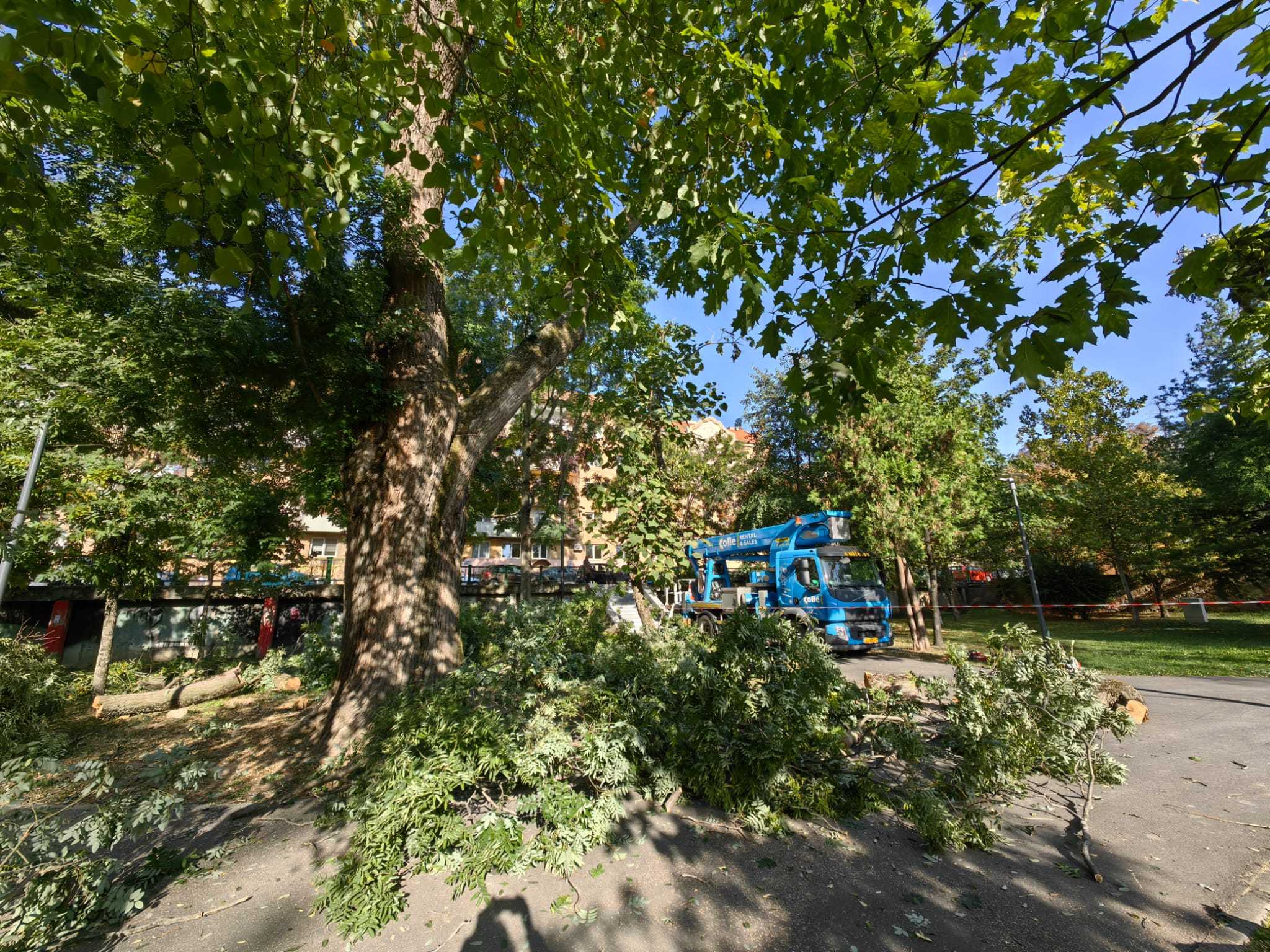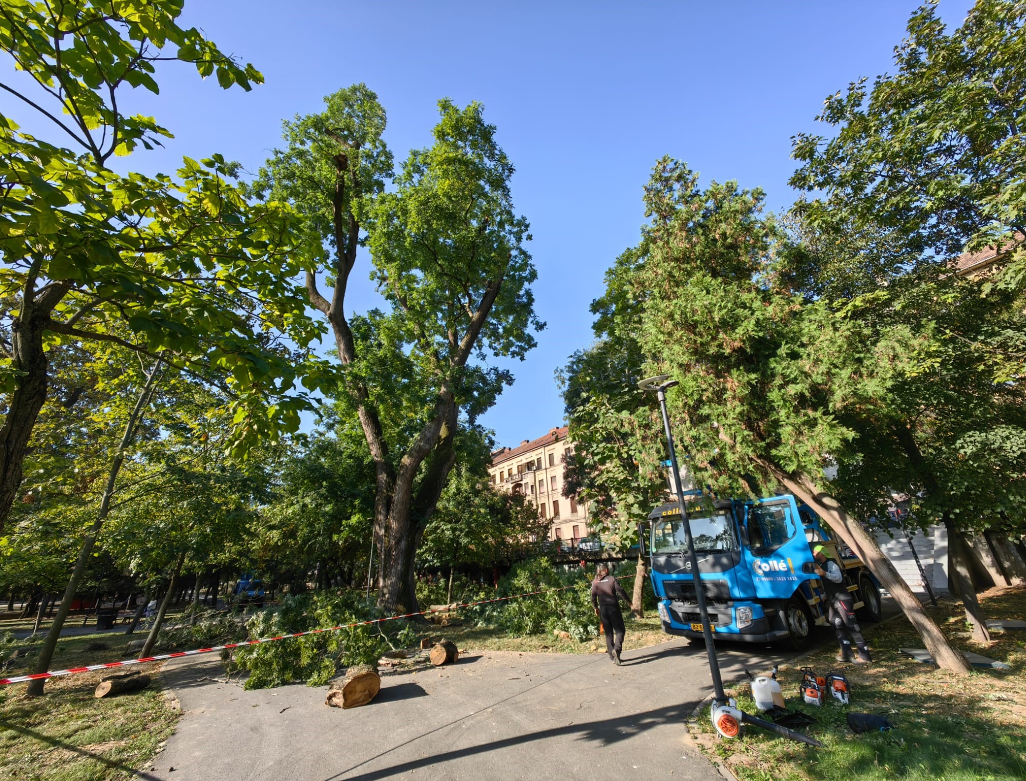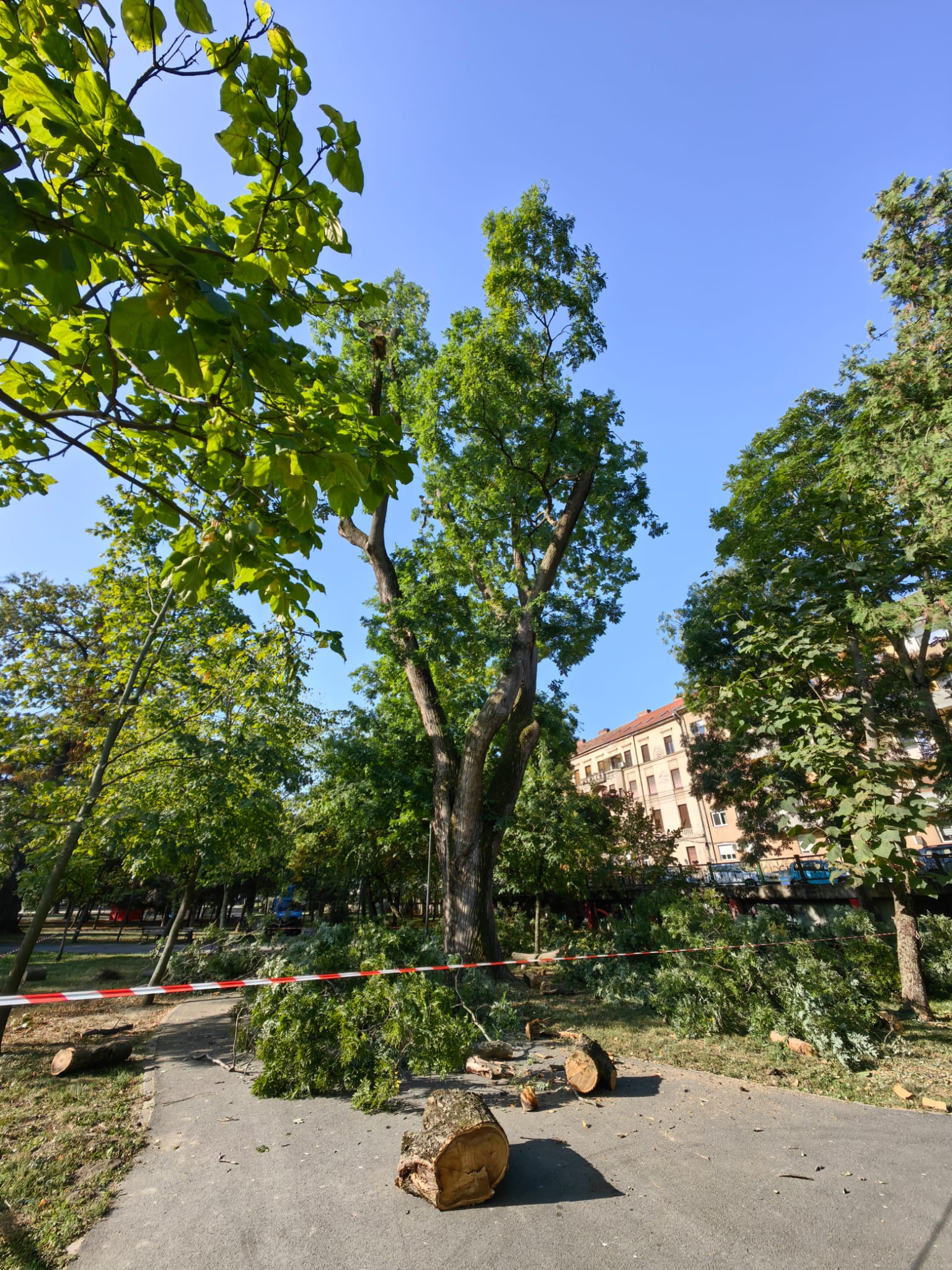 Firma care a efectuat, în urmă cu două săptămâni, măsurători cu rezistograful la doi arbori seculari din municipiu, a pus în practică soluțiile propuse pentru punerea lor în siguranță. După ce săptămâna trecută s-a lucrat la stejarul din Parcul Copiilor, luni a fost finalizată intervenția și la salcâmul japonez din Parcul Eminescu. Cosmin Truță, președintele Asociației Arboriștilor din România, a adus special pentru această intervenție o autoscară de dimensiuni mari, cu nacel, dată fiind înălțimea arborelui. Trei zile s-a lucrat la copac, care, în momentul de față, nu mai reprezintă un pericol pentru trecători. Dar iată în ce a constat intervenția: “Am efectuat o reducere de siguranță la coronament mai mult de 50 la sută. Am redus tensiunea din zonele care erau fisurate și de pe extremități și chiar dacă sunt zone care mai sunt cu bureți, ar trebui să mai reziste doi-trei ani. Dar acum îl lăsăm pe el să vedem ce face mai departe, iar în caz de nevoie vom interveni acolo unde este necesar”, a explicat Cosmin Truță.
