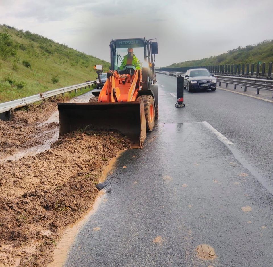 Cantitatea uriaşă de precipitaţii căzută în ultimele zile a dislocat o bucată dintr-un deal aflat în afara şoselei de mare viteză. Numai că pământul care a luat-o la vale a intrat şi pe calea de rulare, pe banda de urgenţă. Echipele de intervenţie ale Direcţiei Regionale de Drumuri şi Poduri Timişoara sunt deja la faţa locului şi lucrează pentru eliberarea autostrăzii.