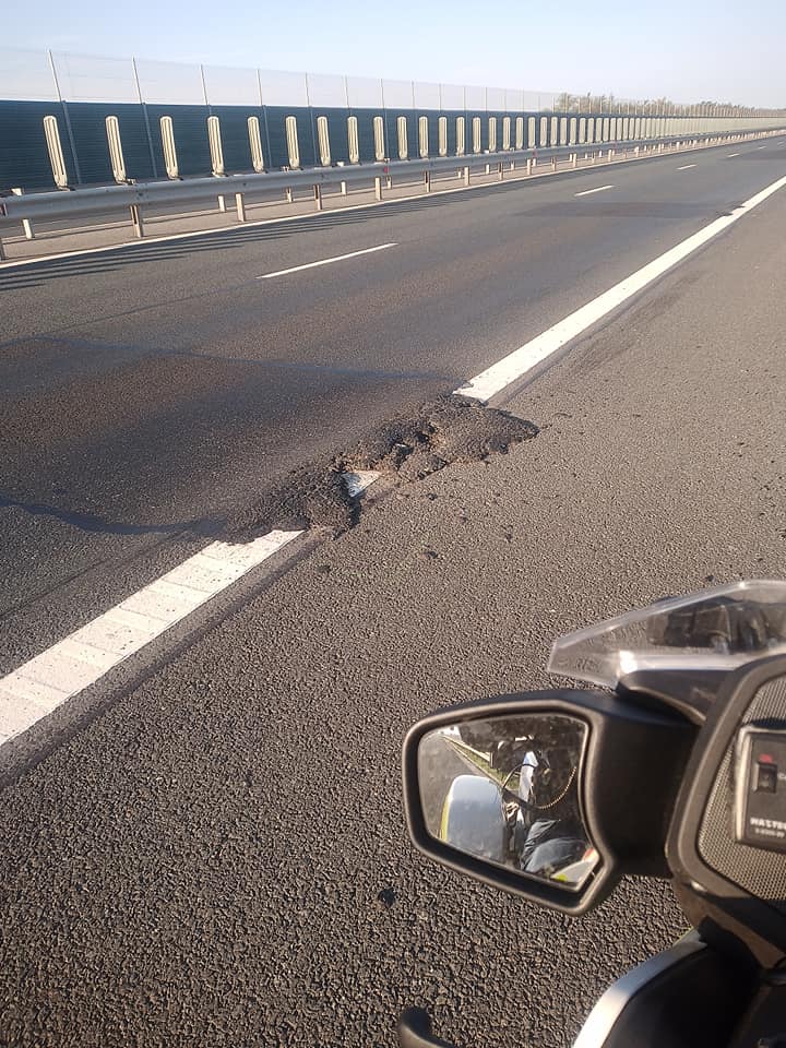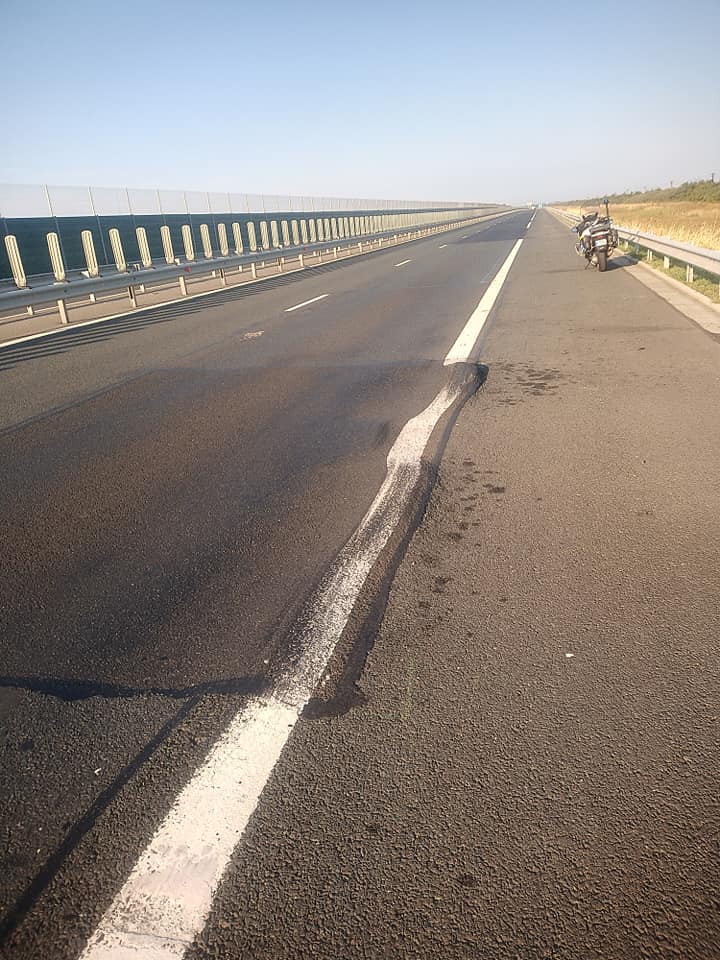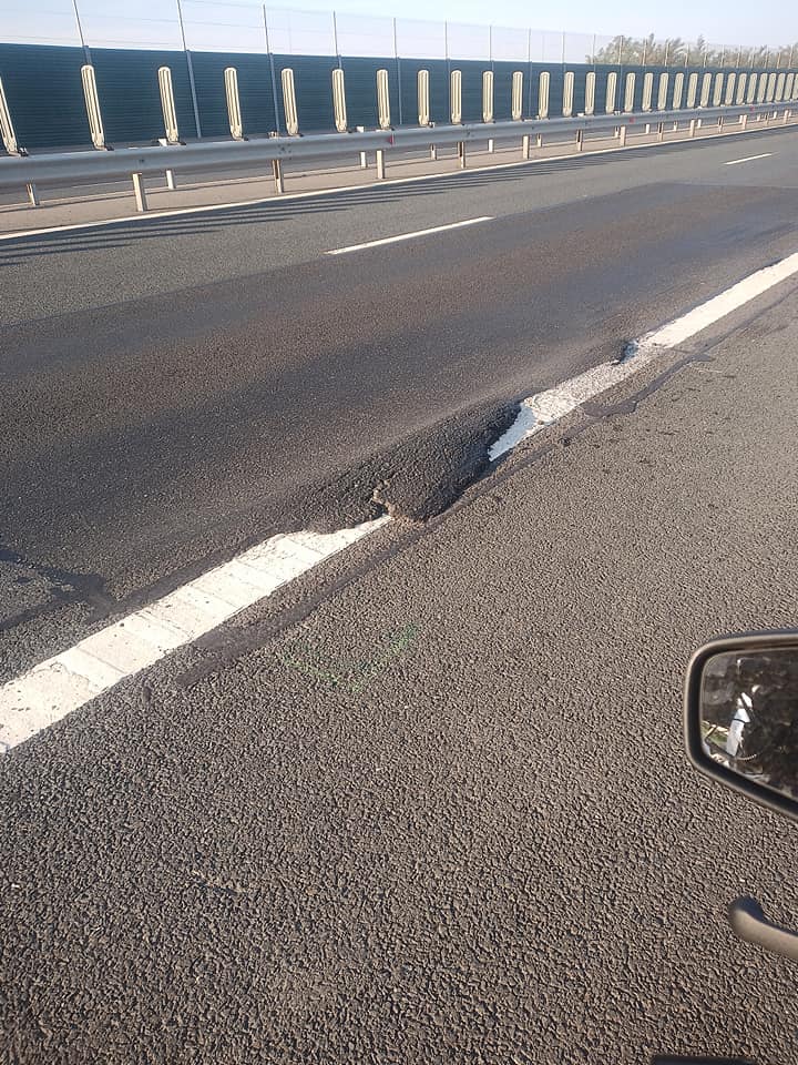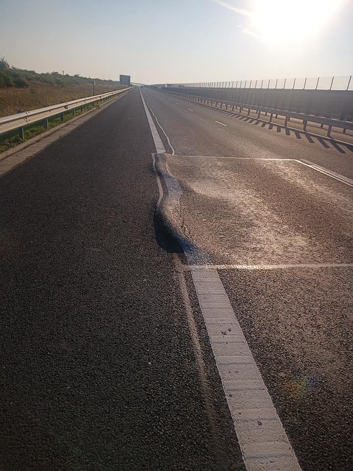 ARAD. Reparaţiile realizate pe autostradă între Arad şi Nădlac par a fi de mântuială. Pe banda 1, pe care circulă preponderent camioanele de mare tonaj, şoseaua este plină de „valuri” şi a ajuns să reprezinte un pericol pentru cei care circulă pe acolo. Şoferii, în special cei cu autoturisme, preferă să forţeze legea şi circulă pe banda a doua, în încercarea de a evita şanţurile şi „dealurile” care au apărut în asfalt. Trebuie precizat faptul că, de această dată, nu gropile sunt problema, acestea lipsind cu desăvârşire. Gropile au fost înlocuite, însă, de refulări şi denivelări.