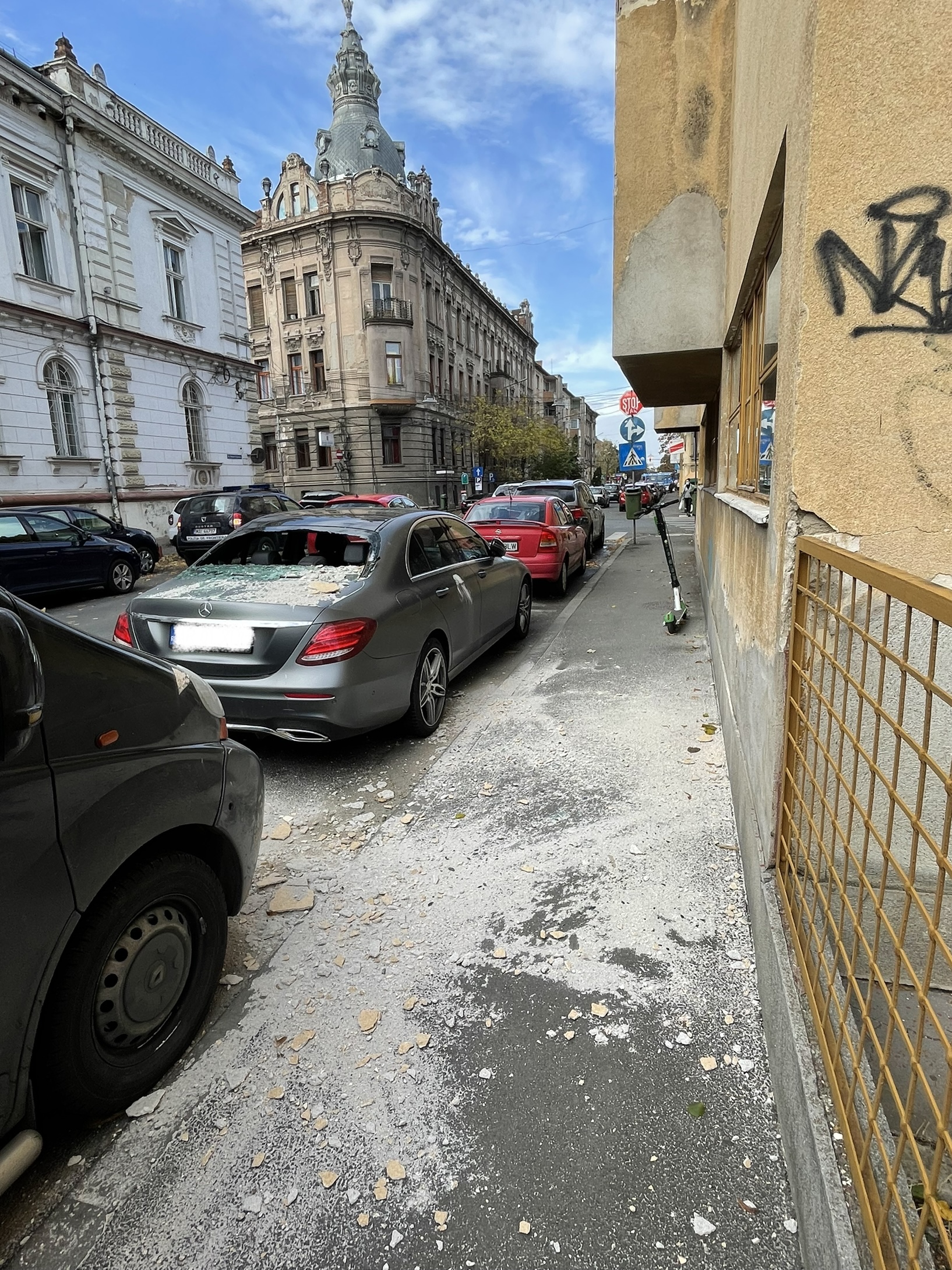 ARAD. Incidentul se putea solda cu o victimă și asta deoarece tencuiala a căzut la nici jumătate de metri de o femeie care trecea pe trotuar.