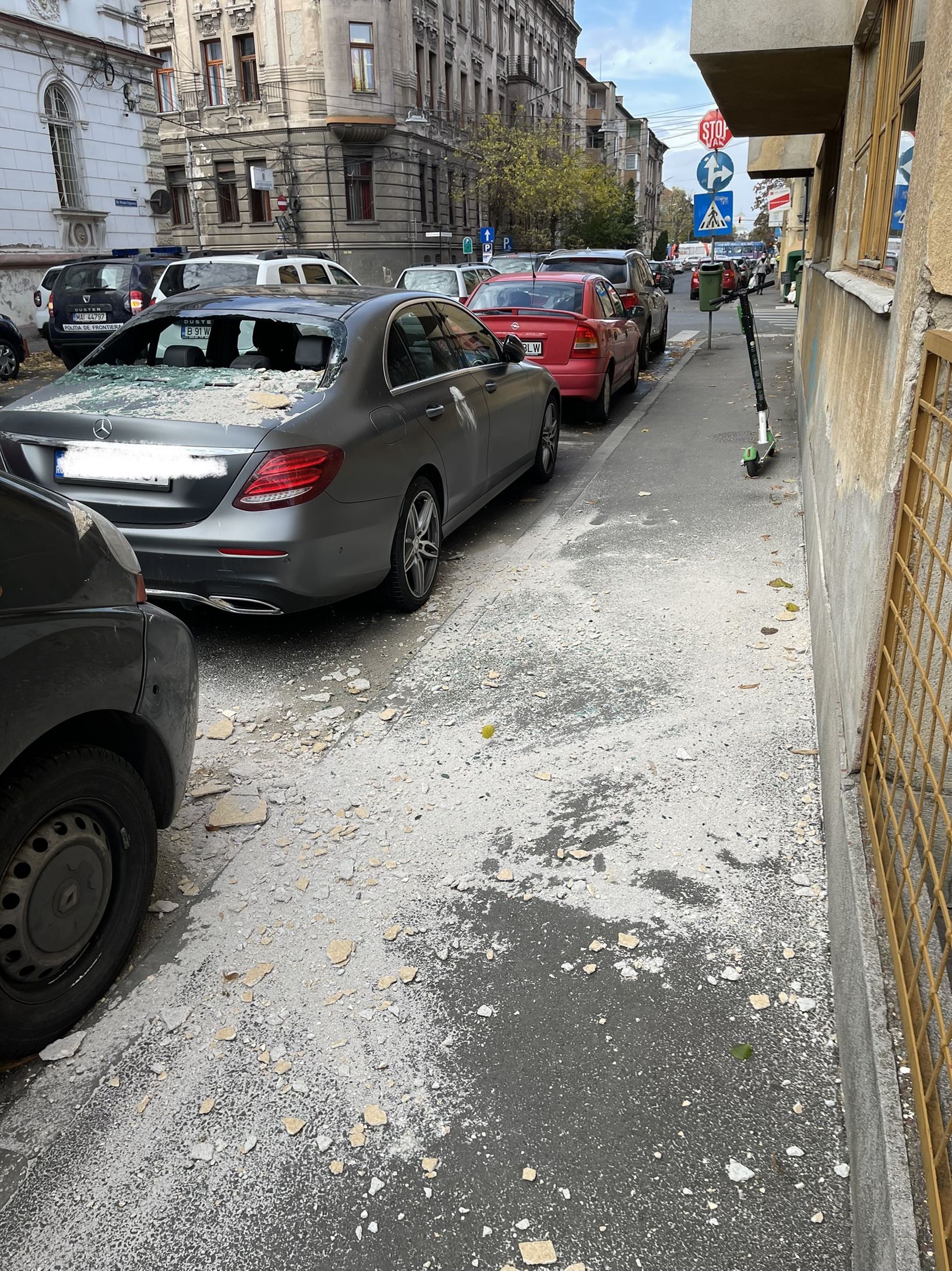 Problema lunetei mașinii avariate, este pe cale să se rezolve! Proprietarul clădirii, împreună cu proprietarul Mercedes-ului, au fost deja la Auto-Schunn și totul este OK, în câteva ore mașina va avea lunetă nouă! Alte avarii nu sunt la mașină!