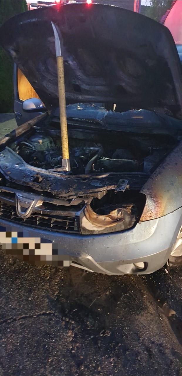 Eu văd că scrie în titlu “Mașina, marca Dacia Duster, ardea în interior la momentul sosirii pompierilor”