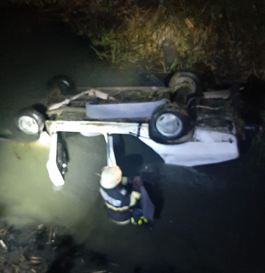 INEU. ISU Arad anunță că în interiorul mașinii au găsit un bărbat și o femeie, ambii inconștienți. Pompierii lucrează pentru scoaterea celor doi din autovehicul.
