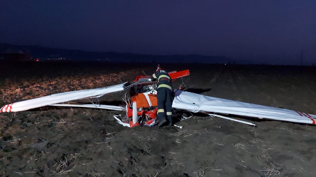 Apelul la 112 a fost făcut de un cioban, acesta ar fi descoperit avionul utraușor prăbușit.