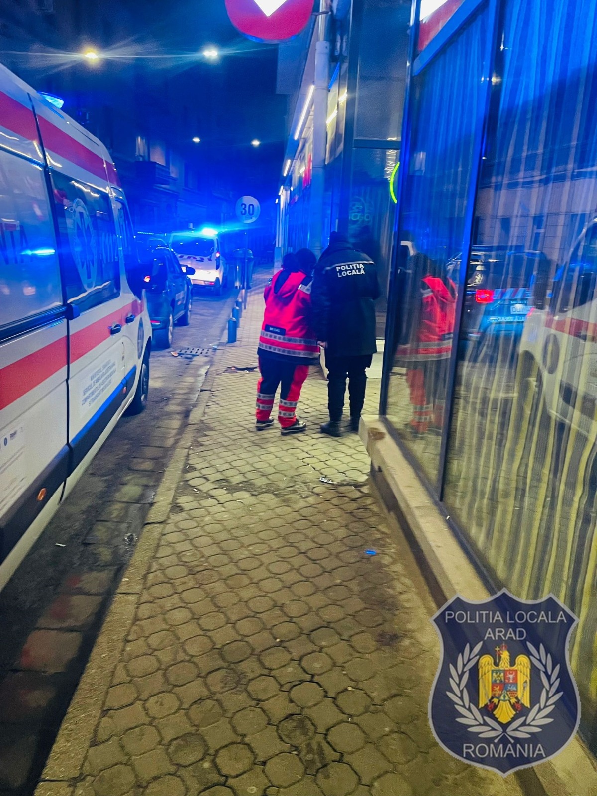 „Echipajul de ordine publică l-a identificat pe bărbat pe Bulevardul Revoluției, lângă un supermarket și a solicitat rapid o ambulanță la fața locului, prin 112, numărul unic pentru apeluri de urgență, în vederea evaluării stării bărbatului, care era incapabil să se miște ori să comunice, dar prezenta semne vitale. L.A., în vârstă de 32 de ani, nu se afla la prima întâlnire de acest gen, fiind cunoscut de către polițiștii locali drept consumator sistematic de produse alcoolice și de alte substanțe toxice, existând o mare probabilitate ca și la momentul respectiv să se fi aflat în aceeași ipostază” – informează Direcţia Generală Poliţia Locală Arad.