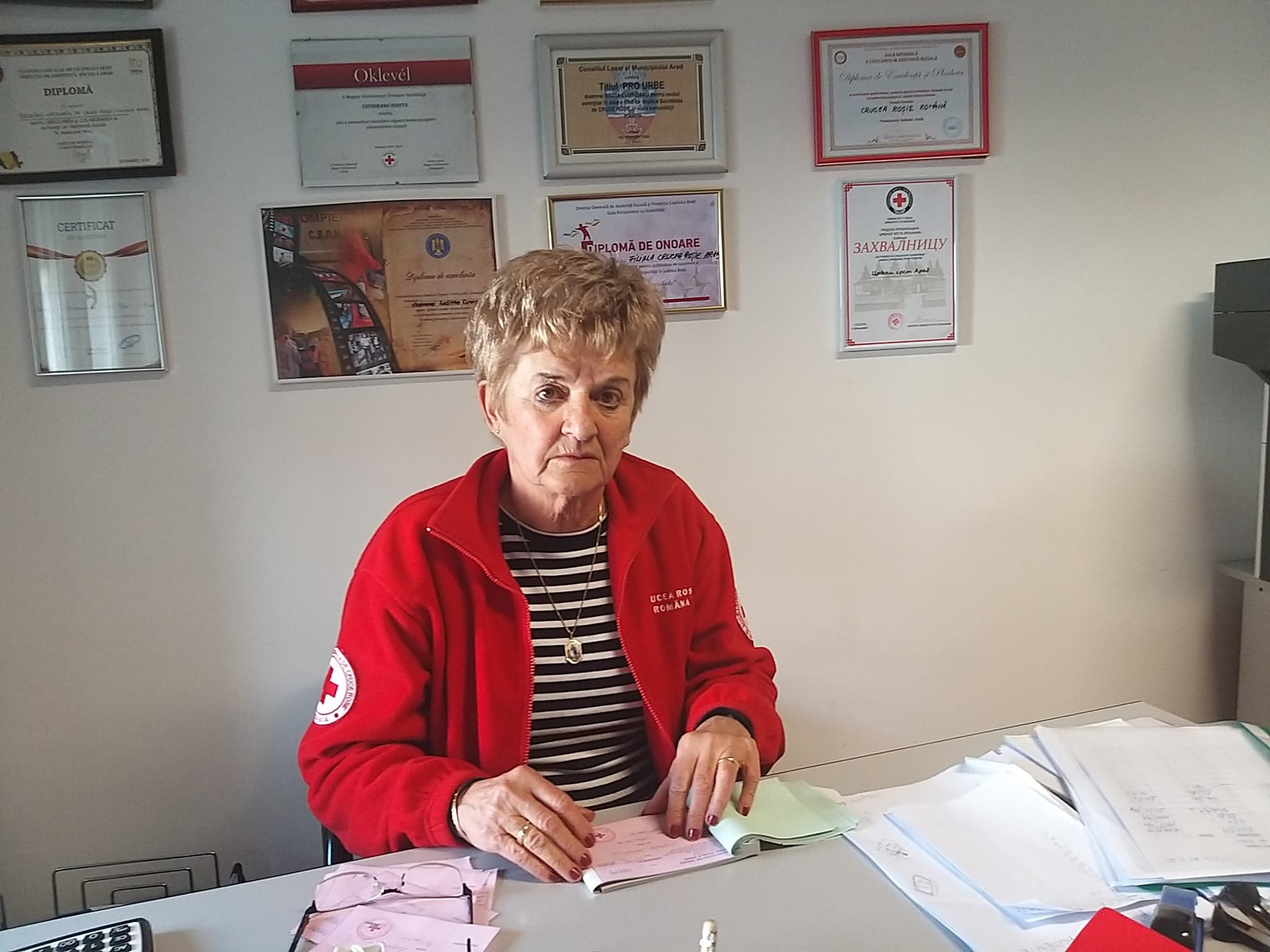„2021 a fost un an destul de greu de derulat în condiţii de pandemie, dar consider că ne-am făcut datoria, lucru pentru care mulţumesc Comitetului Judeţean şi voluntarilor care ne-au ajutat. Am avut donaţii în natură de peste 400.000 de lei pe care le-am dat, în materiale medicale, la spital. Am dotat şcoli cu bănci, am avut şi asigurare de mobilier, îmbrăcăminte, încălţăminte pentru persoane vulnerabile. Am derulat o serie de proiecte: Colgate – la 8.000 de copii; instruirea detaşamentului de dezastre – unde am invitat şi Crucile Roşii partenere din Ungaria; proiecte USAID – pentru popularizarea măsurilor de protecţie împotriva COVID şi de promovare a vaccinării. Mulţumim doctorilor care ne-au sprijinit în acţiunile de educaţie pentru sănătate” – ţine să precizeze Iudita Cuvineanu, director al Crucii Roşii Arad.
