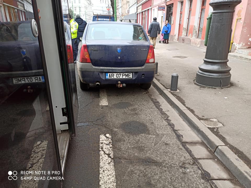 Proaspătul bizon a parcat autoturismul Logan cu numărul de înmatriculare AR – 07 – PME peste pista pentru bicicliști (care este oricum inutilă, impracticabilă, periculoasă și în cele mai multe locuri blocată, pe scurt executată fără cap) și a reușit să blocheze un Imperio care venea dinspre Boul Roșu înspre centru.