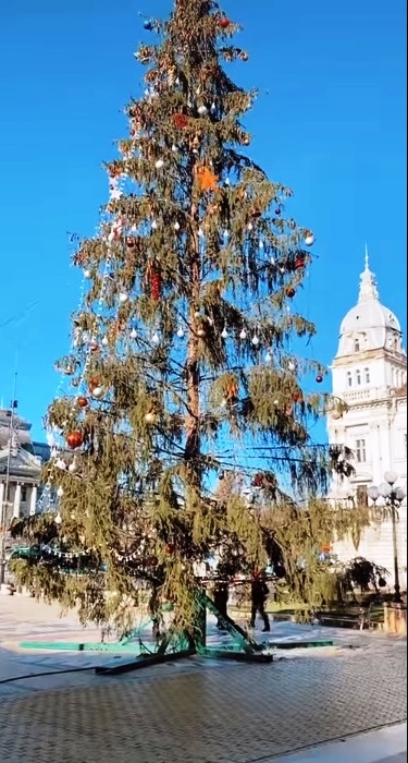 Chiar sunteti penibili cu asa brad…Nu l-a vazut nimeni inainte sa fie ancorat si impodobit? Mergeti la Oradea sau la Tm sa vedeti brad de Craciun. Poate fi artificial dar sa fie ca lumea,nu mizeria asta. Rusine