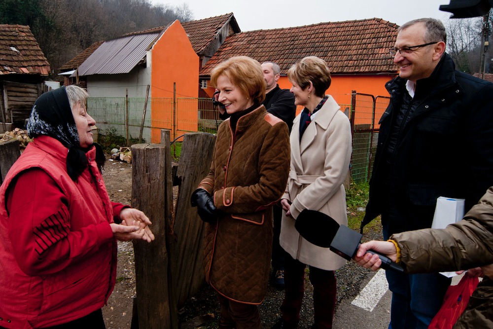 Doamna Elena, în vârstă de 65 de ani, spune că în trecut a fost vizitată şi de Regele Mihai. “Am un venit lunar de 265 de lei, din ajutor social. Foarte greu trăim cu aceşti bani, pentru că soţul nu are niciun venit şi e bolnav. Eu mai lucrez cu ziua în localitate ca să câştig ceva. Pe vremuri venea şi Regele Mihai la noi, suntem mândri că acum vine Majestatea Sa Margareta şi ne oferă ajutor”, a spus doamna Elena.