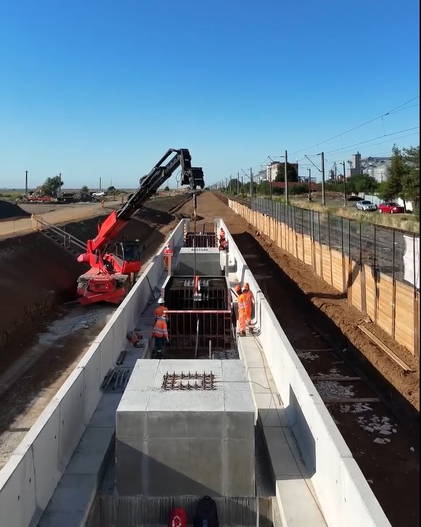 Lucrările avansează în ritm alert pe șantierul căii ferate Arad-Timișoara, aflat în plin proces de modernizare. Reprezentanții Regionalei CFR Infrastructură Timișoara anunță că lucrarea a depășit stadiul de execuție de 20 la sută. „Constructorul Webuild Spa-Partecipazioni Italia Spa-Salcef Spa, continuă progresul lucrărilor de modernizare pe întreaga distanță de 54,86 kilometri, printre acestea enumerându-se: Lucrări la terasamente (lucrări de umplutură, excavații și săpături); Lucrări de lărgire la pasajul superior existent la Șagu, km 41+792; Lucrări de armare și cofrare la culeea C2 și turnare beton la pilonii forați, km 18+729; Turnare de beton la piloții forați la pasaj superior, km 13+856; Lucrări de cofrare și armare grinzi de fundare de lansare tablier metalic, armare elevație Pilă 7 și uzinare tablier metalic grinzi cu zăbrele la pod Mureș, km 2+603; Lucrări la peroanele din stațiile Sânanadrei, Băile Calacea, Orțișoara și Vinga; Lucrări la terasamente la drum temporar pentru devierea traficului rutier și turnare beton piloni forați la pasaj, km 5+330. Reamintim că complexitatea proiectului este sporită de necesitatea de a efectua lucrările fără întreruperea traficului pe linia existentă, care este în prezent în funcțiune”, au anunțat cei de la CFR Infrastructură Timișoara.