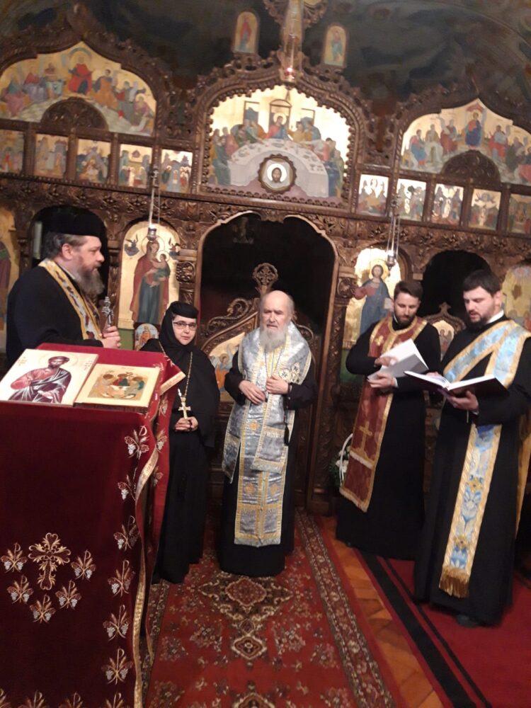 La slujba de hirotesie, oficiată de Înaltpreasfințitul Părinte Timotei în paraclisul Centrului eparhial, au participat: Protos. Dr. Iustin Popovici, consilier cultural, Pr. Emanuel-Ioan Proniuc, secretar eparhial și Diac. Adelin-Ștefan Rusu.