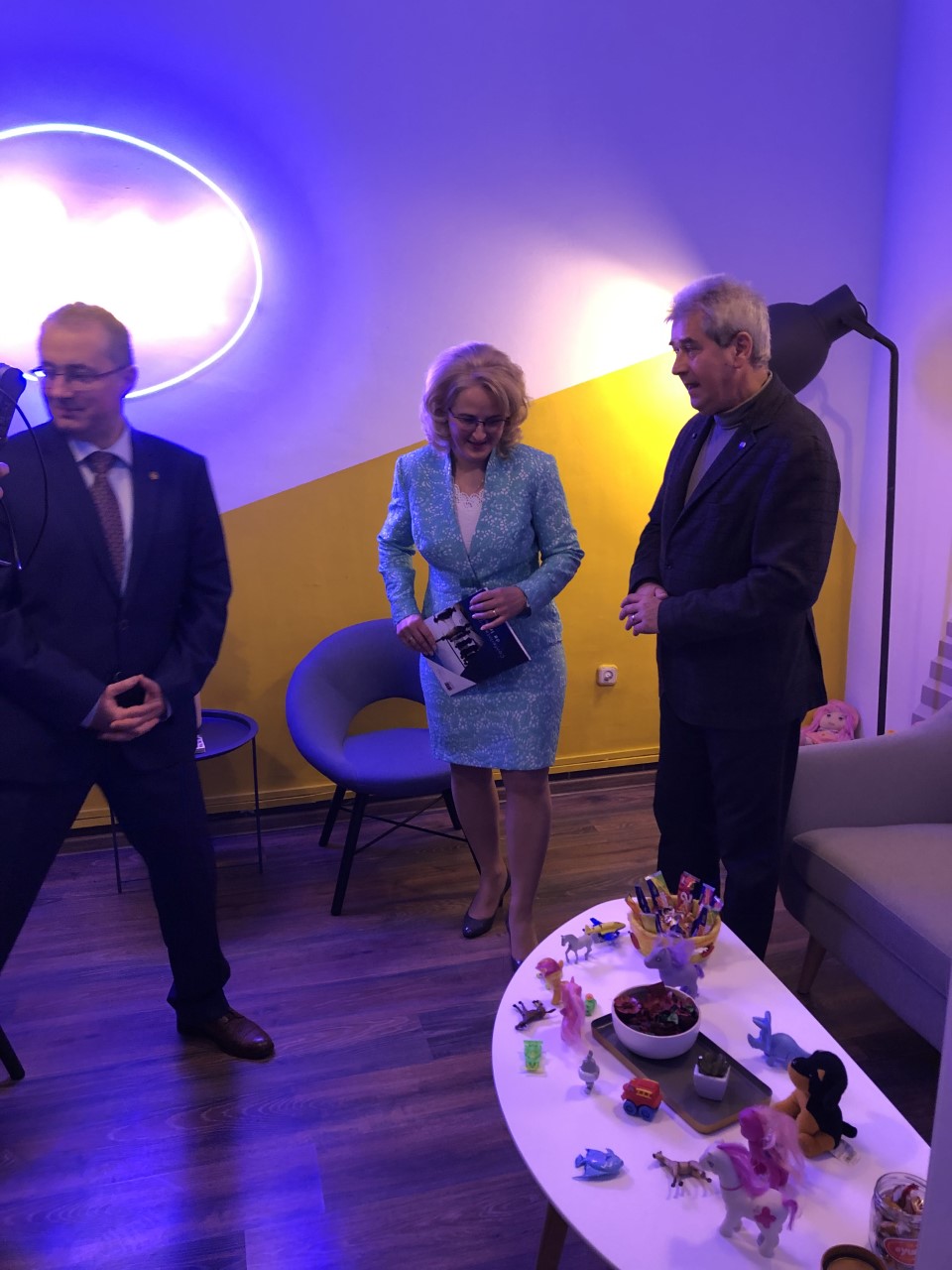 “De un timp, în nenumărate fundamentări ale bugetului, am cerut ministerului să ne aprobe organizarea unei încăperi în cadrul căreia să putem proceda într-un mod civilizat, într-un mod normal, la audierea minorilor. Codul de procedură civilă prevede o serie de situații în care este necesară audierea minorilor într-o serie de procese, cum ar fi stabilirea locuinței copiilor, reglementarea dreptului de vizită, adopția, plasamentele. Legea spune simplu: se audiază în camera de consilii, instanța putând stabili dacă participă sau nu părinții , avocații. Evident acei copii pe care instanța îi are de audiat ajung aici pentru că în familia din care provin există o problemă și de aceea în majoritatea țărilor civilizate audierea acestor copii nu are loc în cadrul unei săli de ședință. Resurse financiare guvernamentale nu am reușit – să spun așa – să obținem. În schimb, am reușit, prin implicarea Rotary Club Arad, care în urma unor discuții a acceptat să amenajeze o astfel de încăpere, donând mobilierul Tribunalului Arad. Prin acest gest au reușit să aducă normalitatea și standardele normale europene și la nivelul Tribunalului Arad și sunt convins că de acum încolo discuțiile dintre magistrat și copil se vor purta într-o atmosferă mult mai relaxată, prietenoasă și netraumatizantă”, a explicat Flavius Bradin, vicepreședintele Tribunalului Arad.