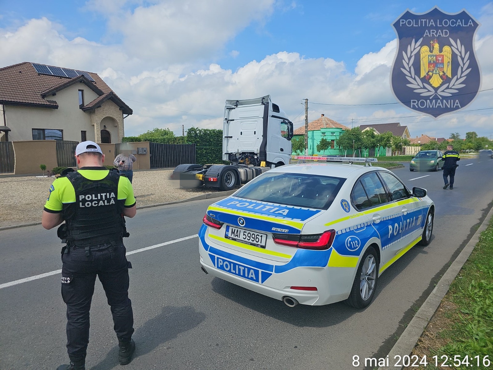 Astfel, în timpul unei acțiuni efectuate de către polițiștii locali de circulație pentru verificarea autorizațiilor, în proximitatea străzii Meșterul Manole din cartierul Gai, într-o zonă cu restricție de tonaj, a fost identificat L.M., în vârstă de 55 de ani, cu domiciliul în municipiul Arad, în timp ce conducea pe drumurile publice un cap de camion ce avea numere false.