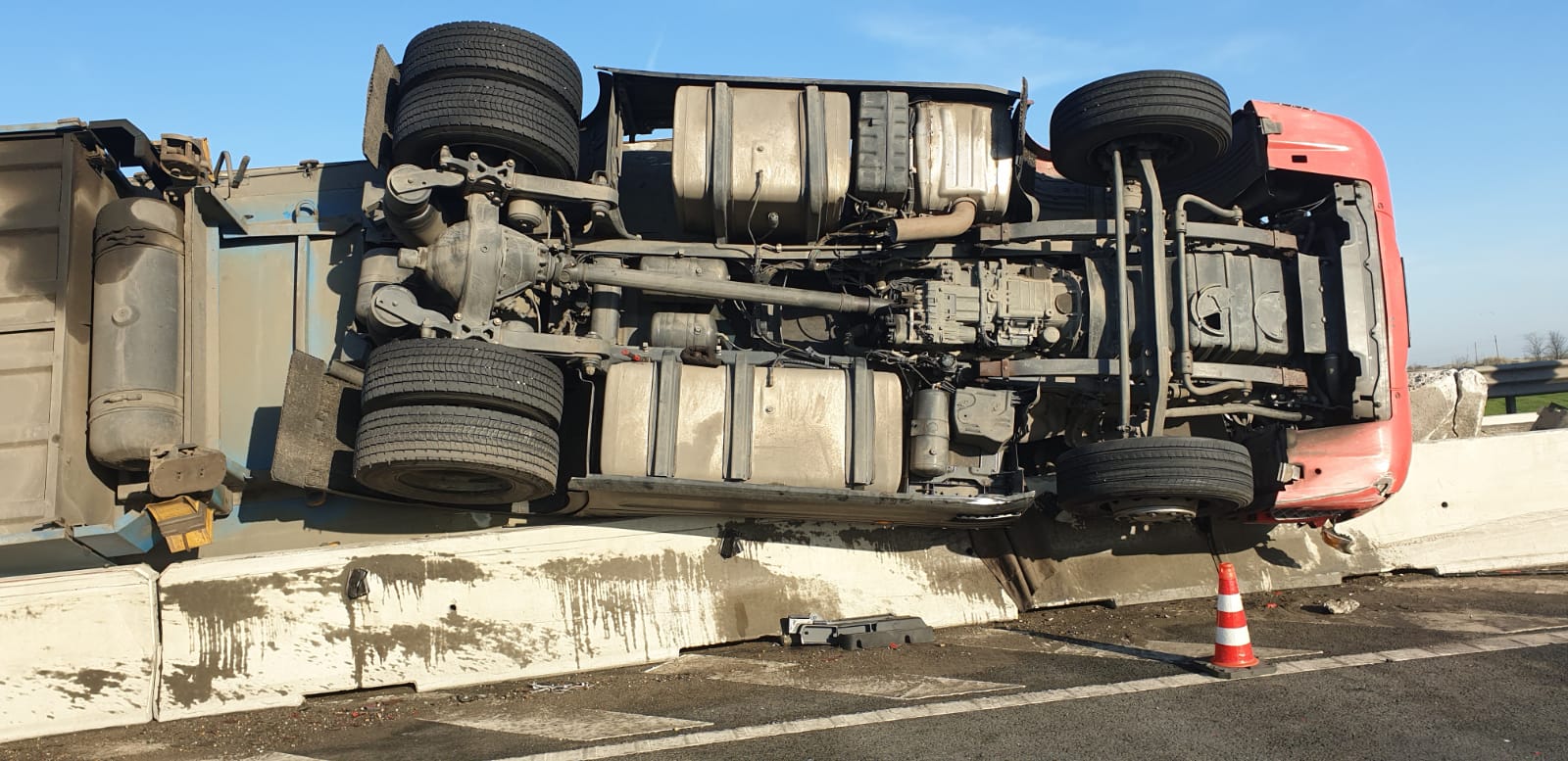 Apelul la 112 a fost făcut în jurul orei 1:00, apelantul anunțând că un autocamion s-a răsturnat, pe Autostrada A11 (legătura între A1 și DN7).