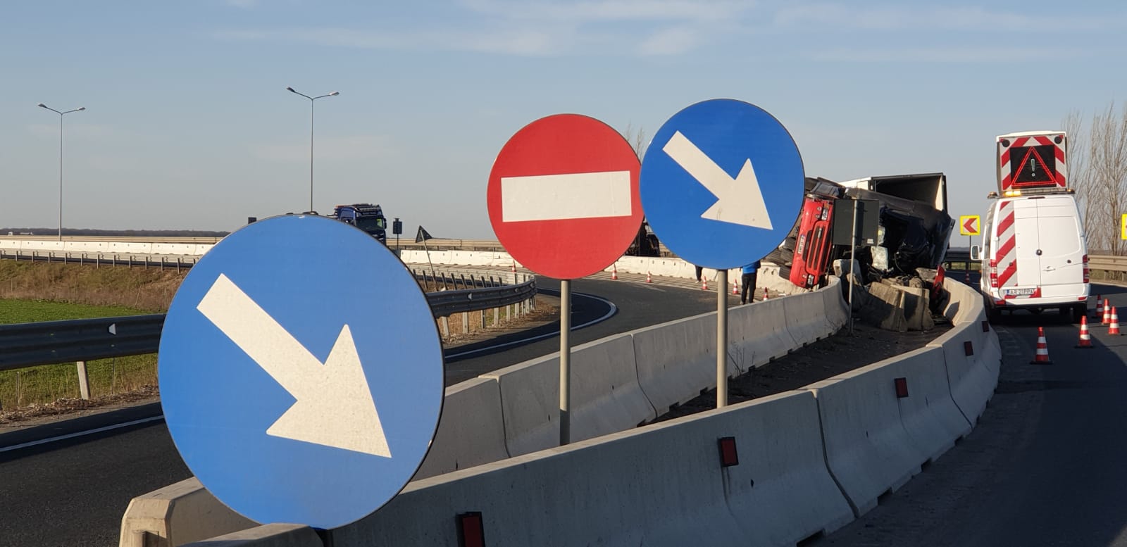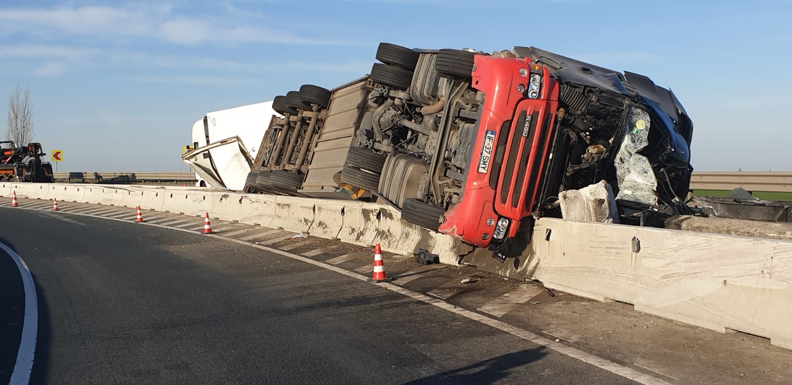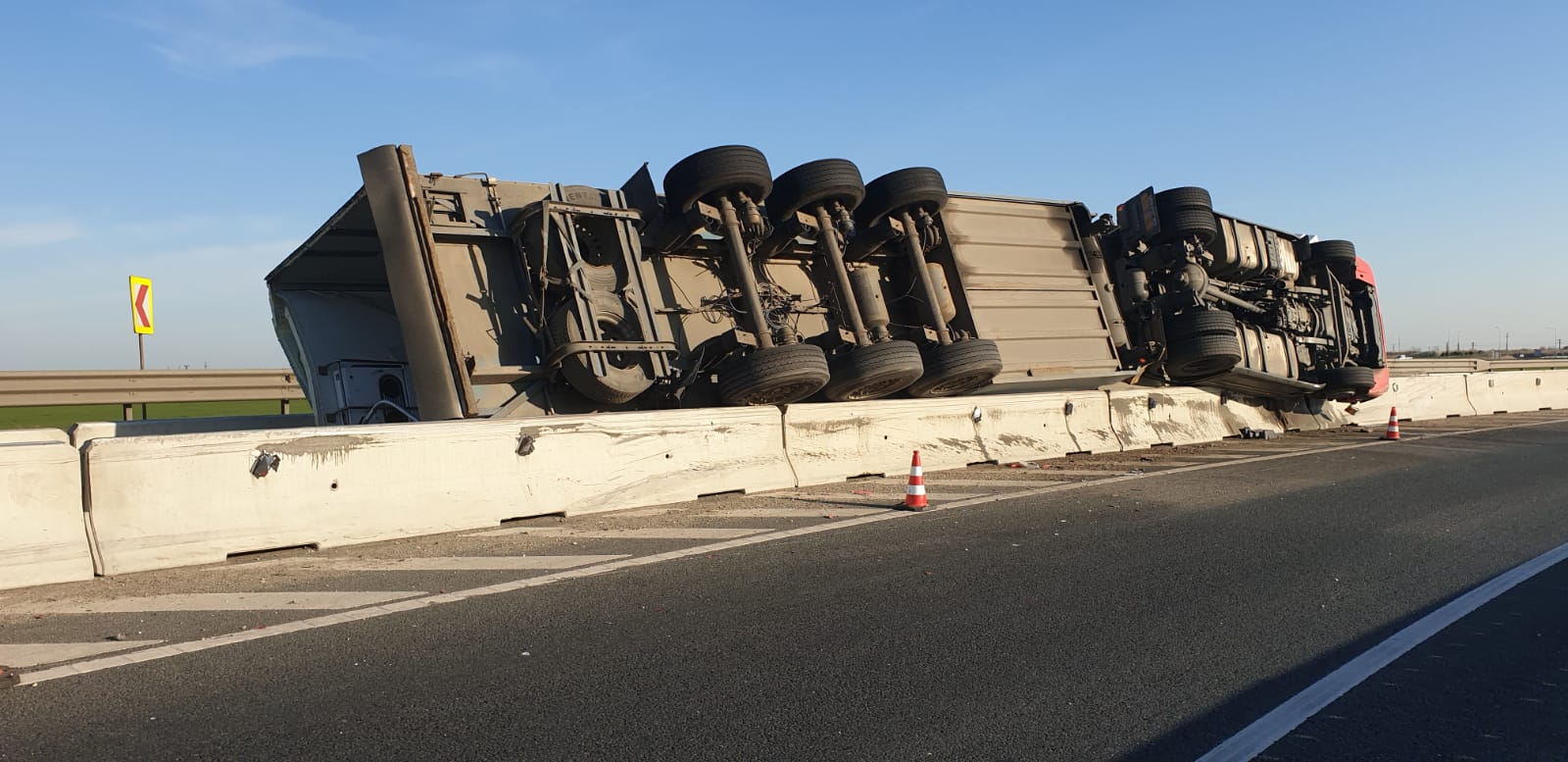 Apelul la 112 a fost făcut în jurul orei 1:00, apelantul anunțând că un autocamion s-a răsturnat, pe Autostrada A11 (legătura între A1 și DN7).
