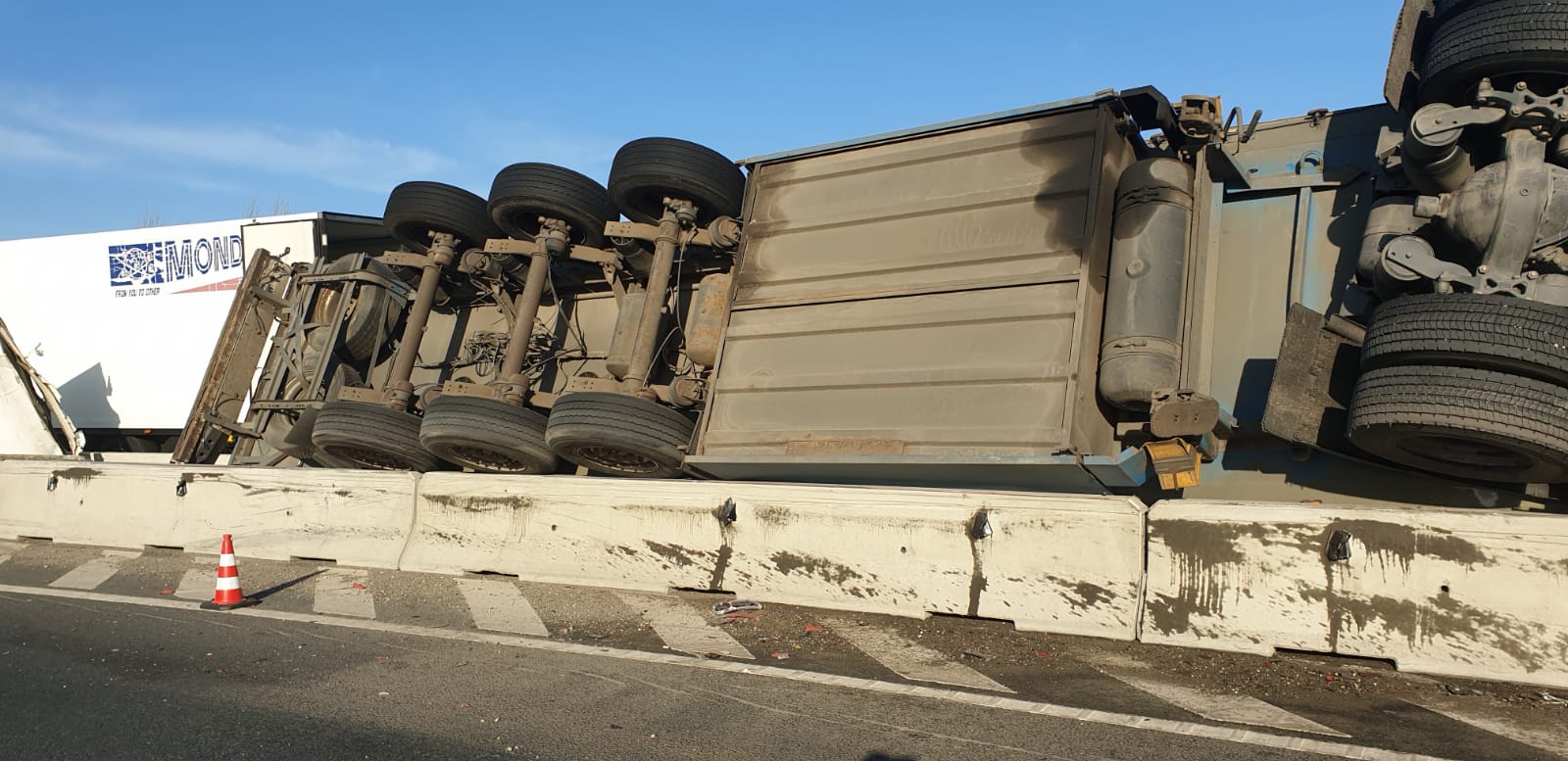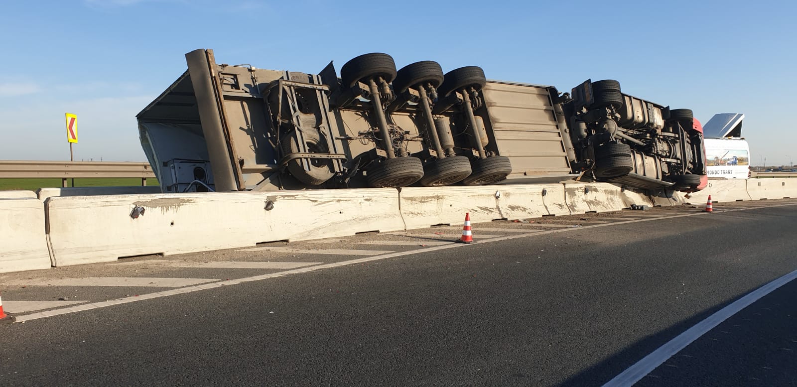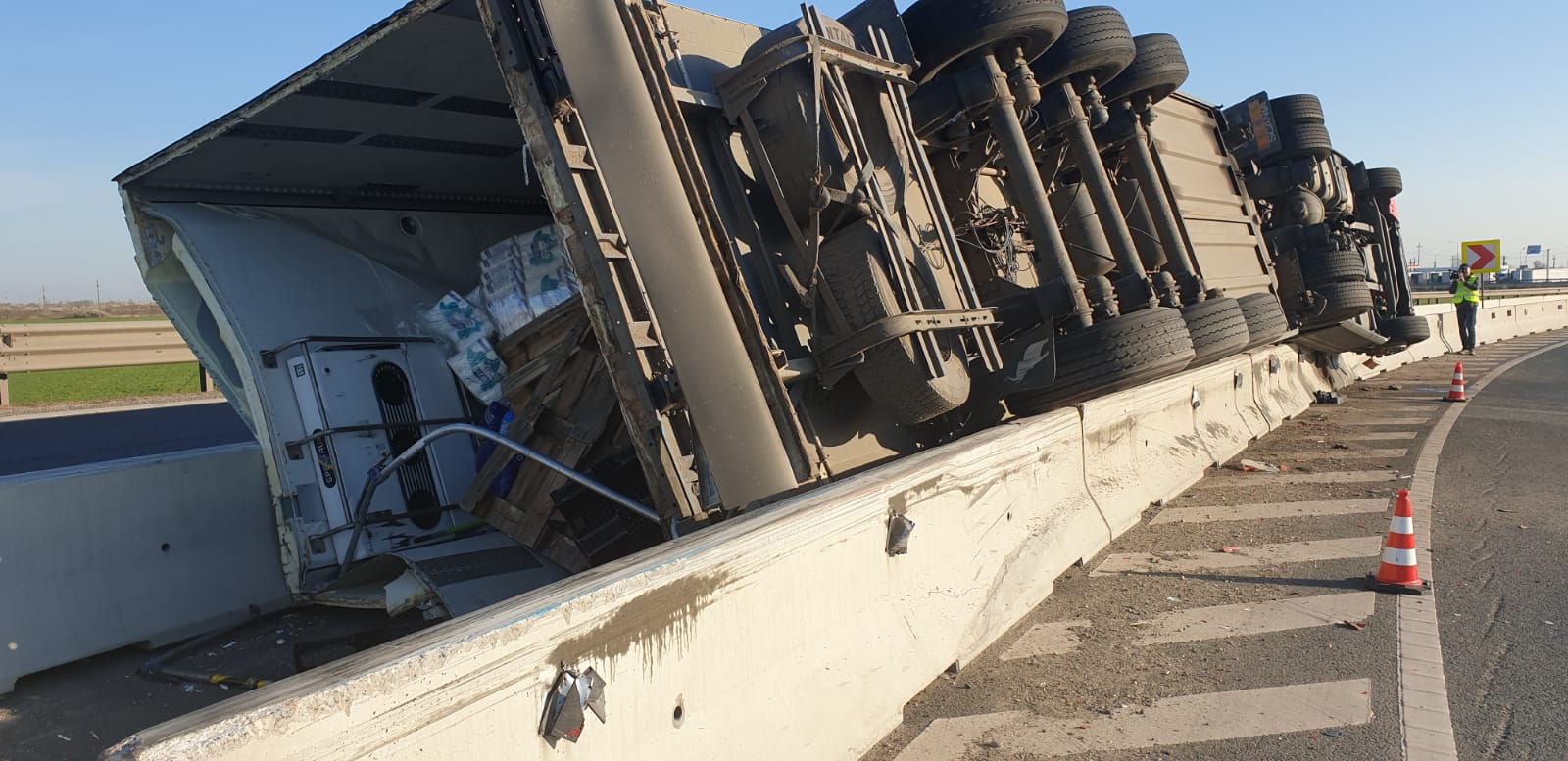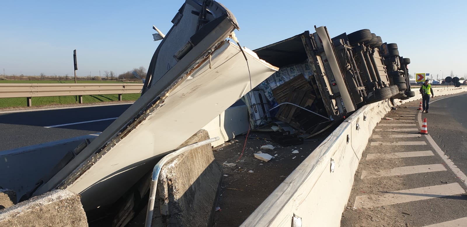 Apelul la 112 a fost făcut în jurul orei 1:00, apelantul anunțând că un autocamion s-a răsturnat, pe Autostrada A11 (legătura între A1 și DN7).