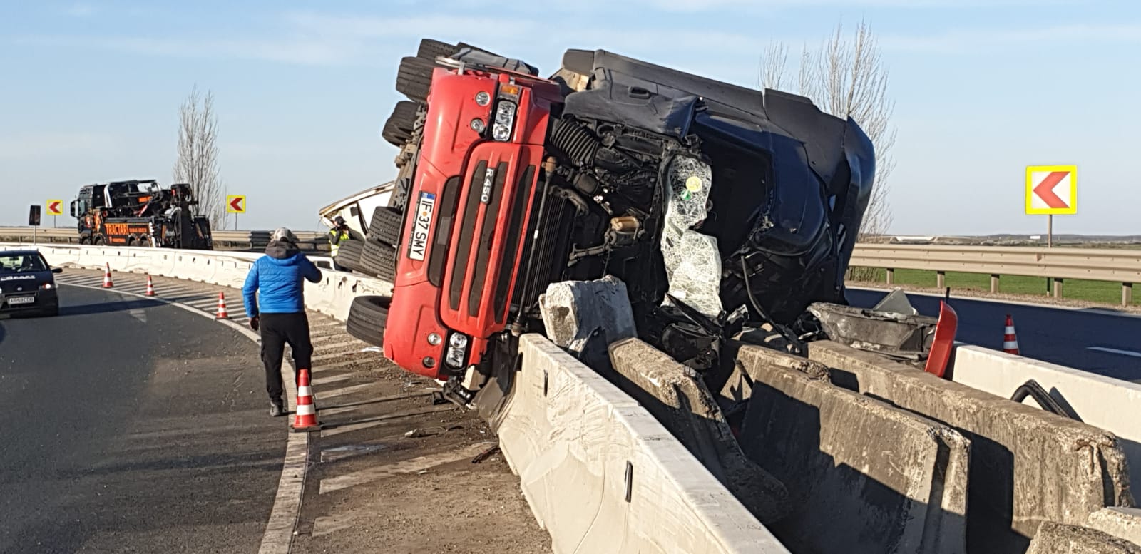 Multi vad ca dau vina pe acea bucata de iesire de pe autobanda !!! … mai oameni buni , si n special astia care va crede ti ,, soferi profesionisti ,, voi respectati indicatoarele respective de restrictie a vitezei ? daca te incadrezi in acea limita si esti constient ce incarcatura ai , in mod sigur poti face acea coborare fara probleme , insa cand tu ca sofer ,, profesionist vezi indicatorul de 50 km/h trebuie sa stii ca respectiva restrictie e in special pt autoturisme , cu atat mai mult tu care conduci un camion trebuie sa te incadrezi in special sub limita respectiva , mai ales daca esti si incarcat , iar pct . de greutate e ceva mai sus , din ce se vede din filmari , respectivul era ca si gol , deci ori nu a avut marfa asigurata si a intrat cu viteza in acea curba , ia fugit marfa si la dezechilibrat , ori posibil a ignorat complect indicatoarele , ori poate era ca si adormit …. e plina Europa de coborari cu restrictii si de 30-40 km/h pt camioane , dar daca tu te incumeti sa intri cu 60-70 in curbele respective e doar riscul tau la care te supui voluntar …pacat ca un tanar si a pierdut viata , insa a mers pe propia lui mana !