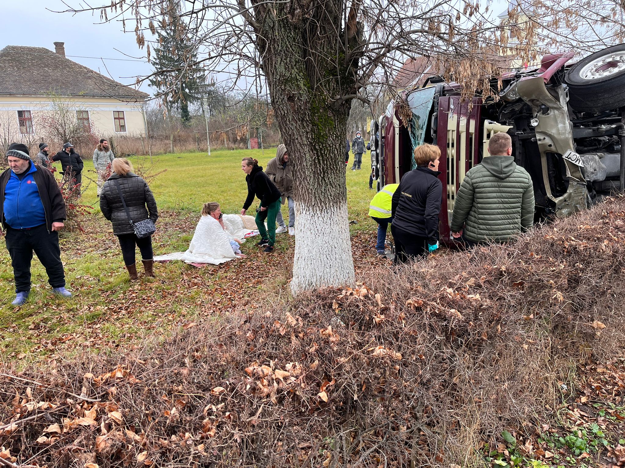 “În data de 10 decembrie, în jurul orei 12:00, un bărbat de 48 de ani, din județul Tulcea, a condus o autoutilitară pe DN 79, în localitatea Șimand, spre Oradea. La km 29+100m, a pierdut controlul asupra direcției de deplasare, răsturnându-se în afara părții carosabile, după ce a intrat în coliziune cu un stâlp de curent și un indicator rutier. În urma impactului a fost rănită ușor o femeie de 48 de ani, pasageră în autoutilitară.Conducătorul auto a fost testat cu aparatul alcooltest, rezultatul fiind negativ. În cauză a fost întocmit un dosar penal și se continuă cercetările pentru stabilirea cu exactitate a cauzelor și împrejurărilor care au dus la producerea accidentului rutier”, informează IPJ Arad.