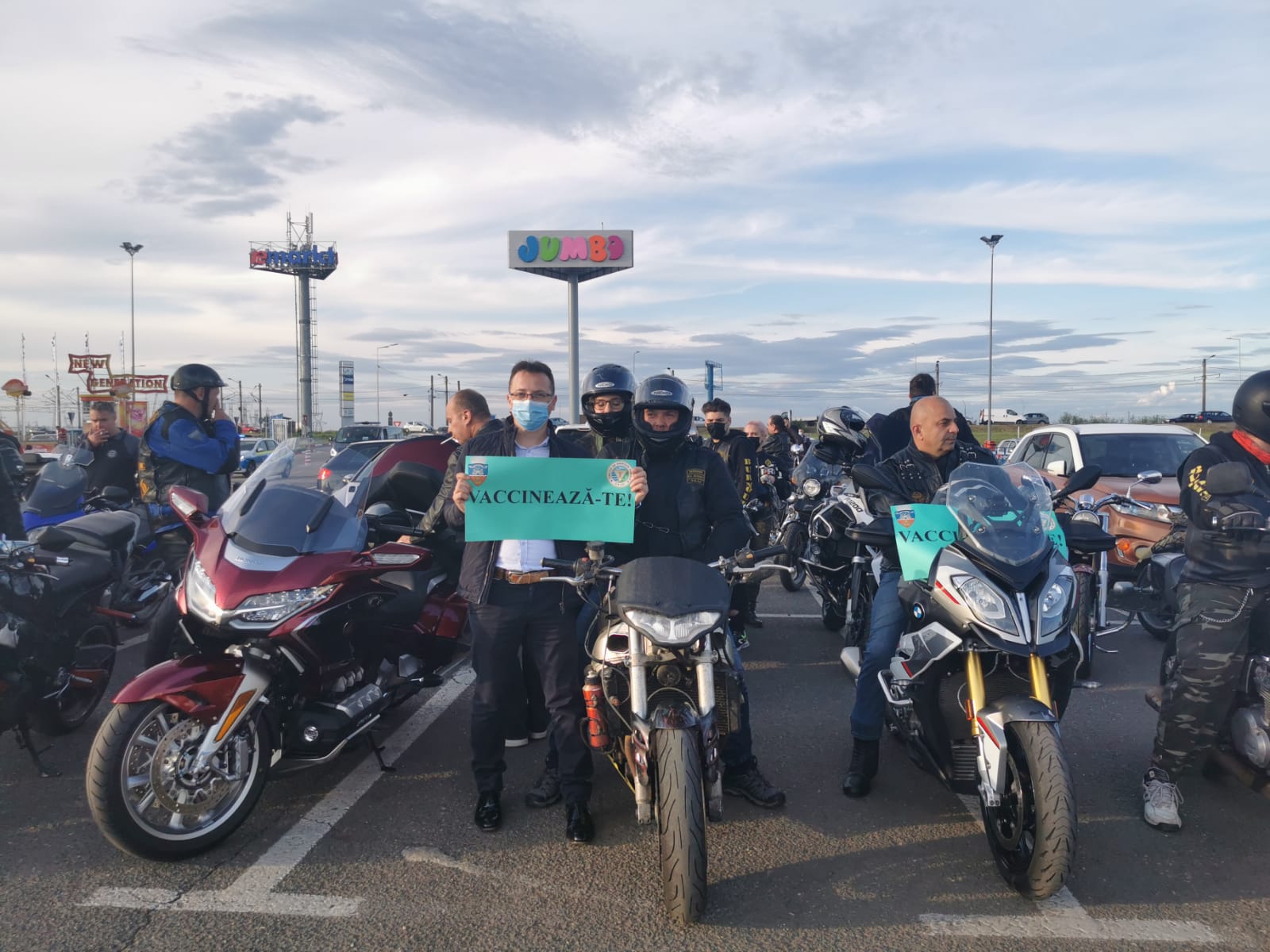 ARAD. MotoClubul “Burnout” Arad împreună cu Direcția de Sănătate Publică Arad și Prefectura Județului au organizat joi seara, de la ora 18:00, în fața Primariei, un eveniment de promovare a campaniei de imunizare prin vaccinare “De drag pentru Arad”.