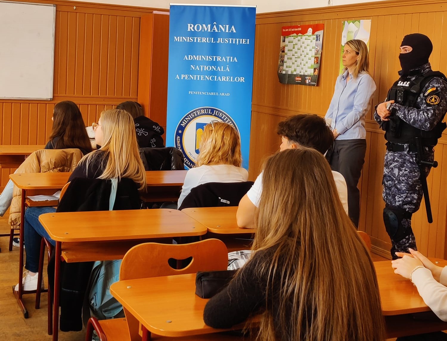 Aproape 200 de elevi de liceu au avut ocazia să discute cu psihologii din cadrul penitenciarului dar și să vizioneze în premieră un material educativ creat de către aceștia. Cu titlul „Educație prin puterea exemplului – Modele negative – capitolul I Drogurile”, materialul prezintă interviuri luate unor persoane private de libertate foste consumatoare de droguri sau care au fost condamnate pentru trafic de droguri.