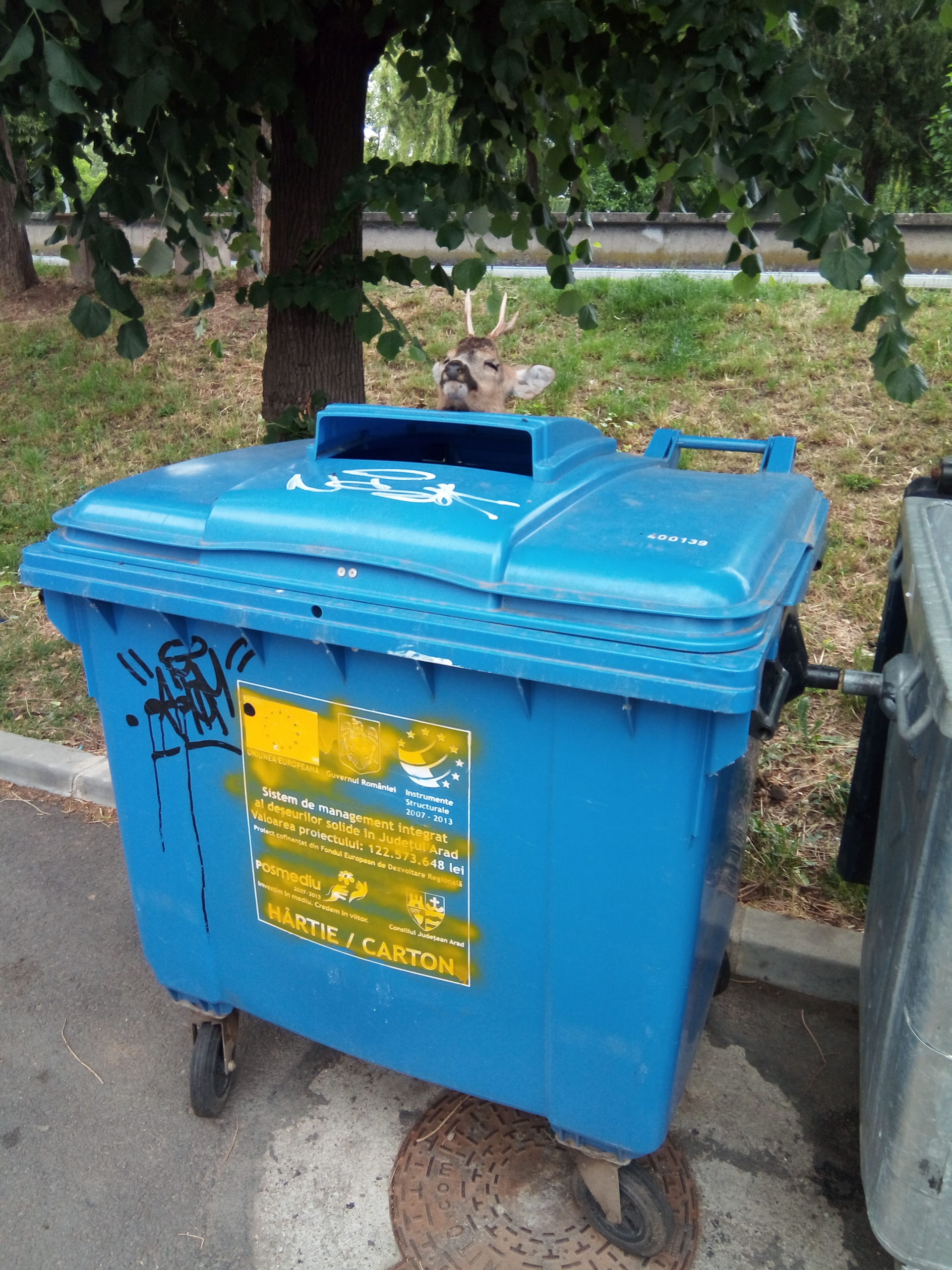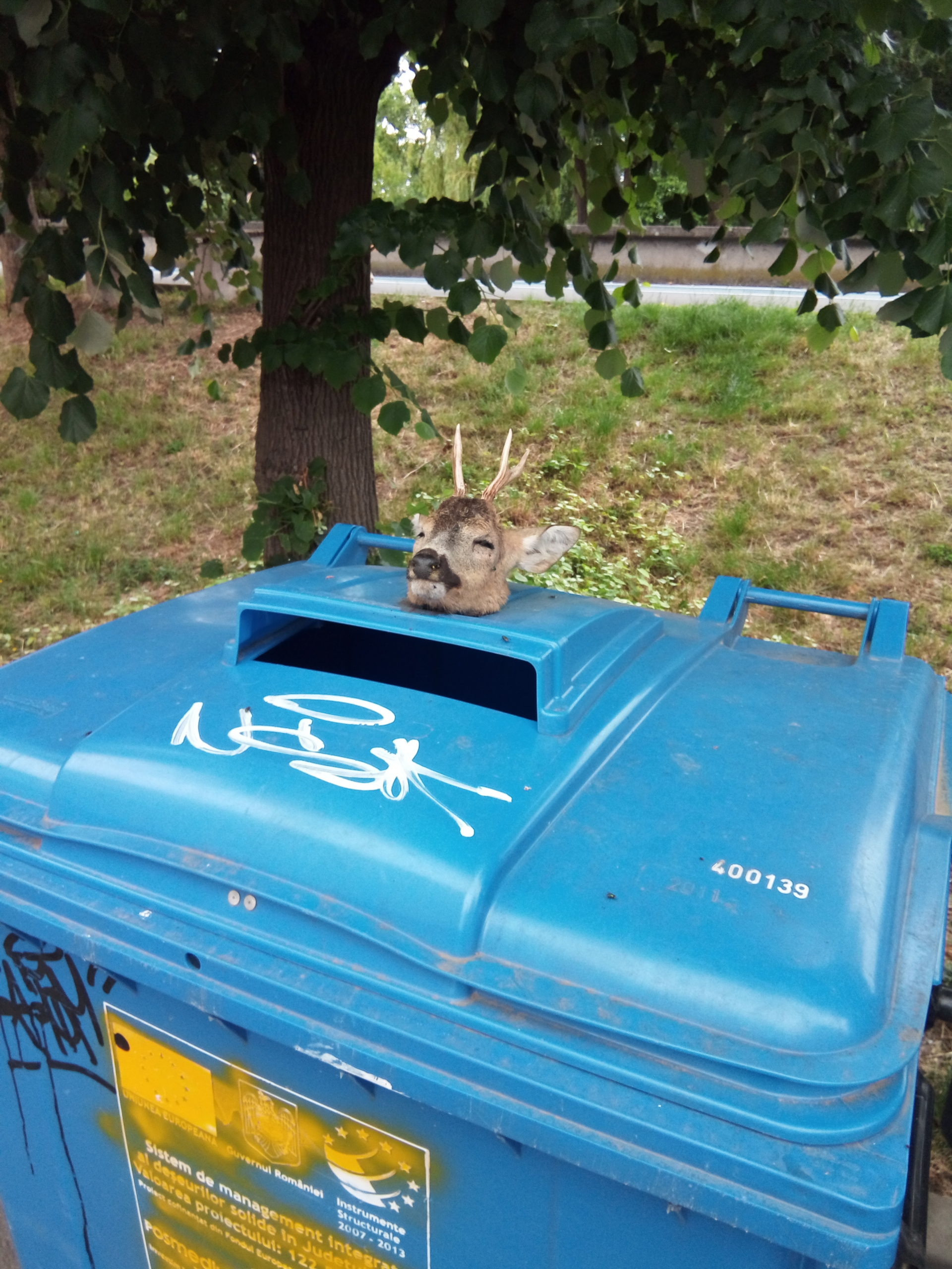 Arad. Am fost contactați pe adresa redacției Jurnal arădean/Aradon, de un arădean care a avut parte de o imagine macabră în timp ce se plimba prin oraș. Acesta a observat, siderat, pe capacul unui tomberon aflat în vecinătatea blocurilor de pe strada Toth Șandor, din apropierea Podului Decebal, un cap retezat de căprior. Capul animalului era așezat chiar pe mijlocul tomberonului, ca și cum era pregătit pentru o expoziție macabră.