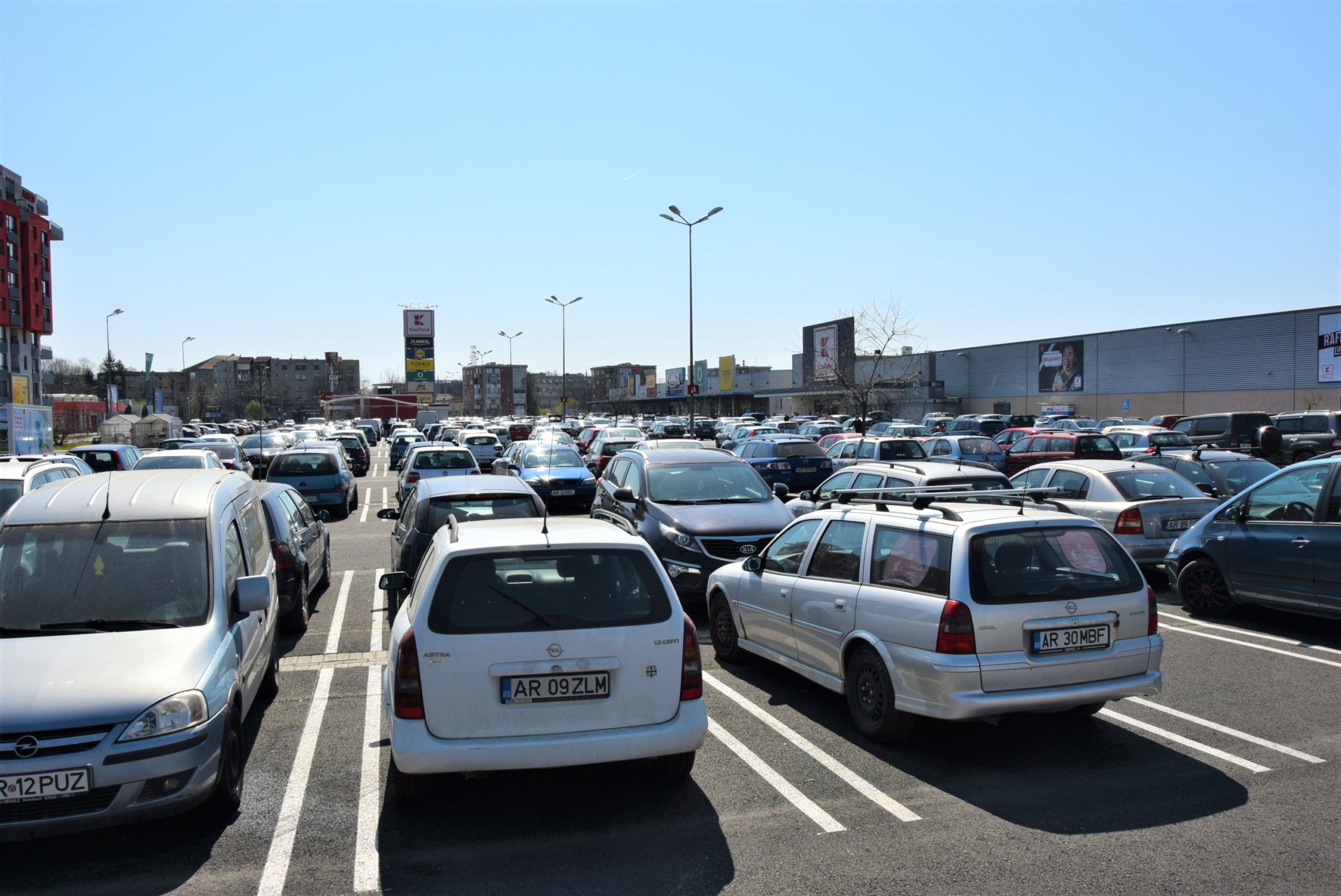 De departe, cele mai multe autoturisme au fost în dreptul supermarketurilor de pe strada Banu Mărăcine. La ora la care ne-am deplasat, parcarea era aproape plină de autoturisme, mai erau puține locuri libere pentru a parca. Totul, ca într-o zi normală în Arad, doar că acum nu putem vorbi despre așa ceva. Este foarte adevărat, de asemenea, că s-ar putea ca multe din autoturismele parcate aici să fie și ale celor care locuiesc la blocurile din zonă.