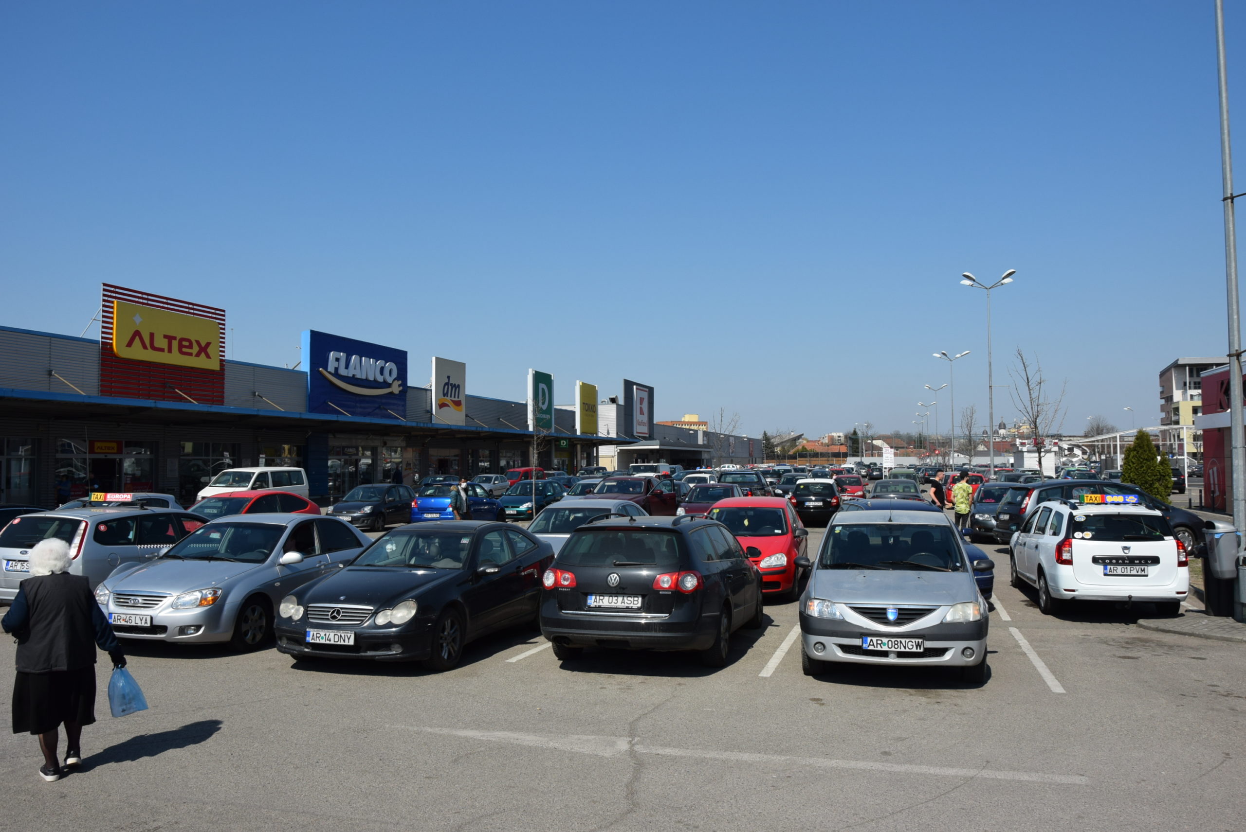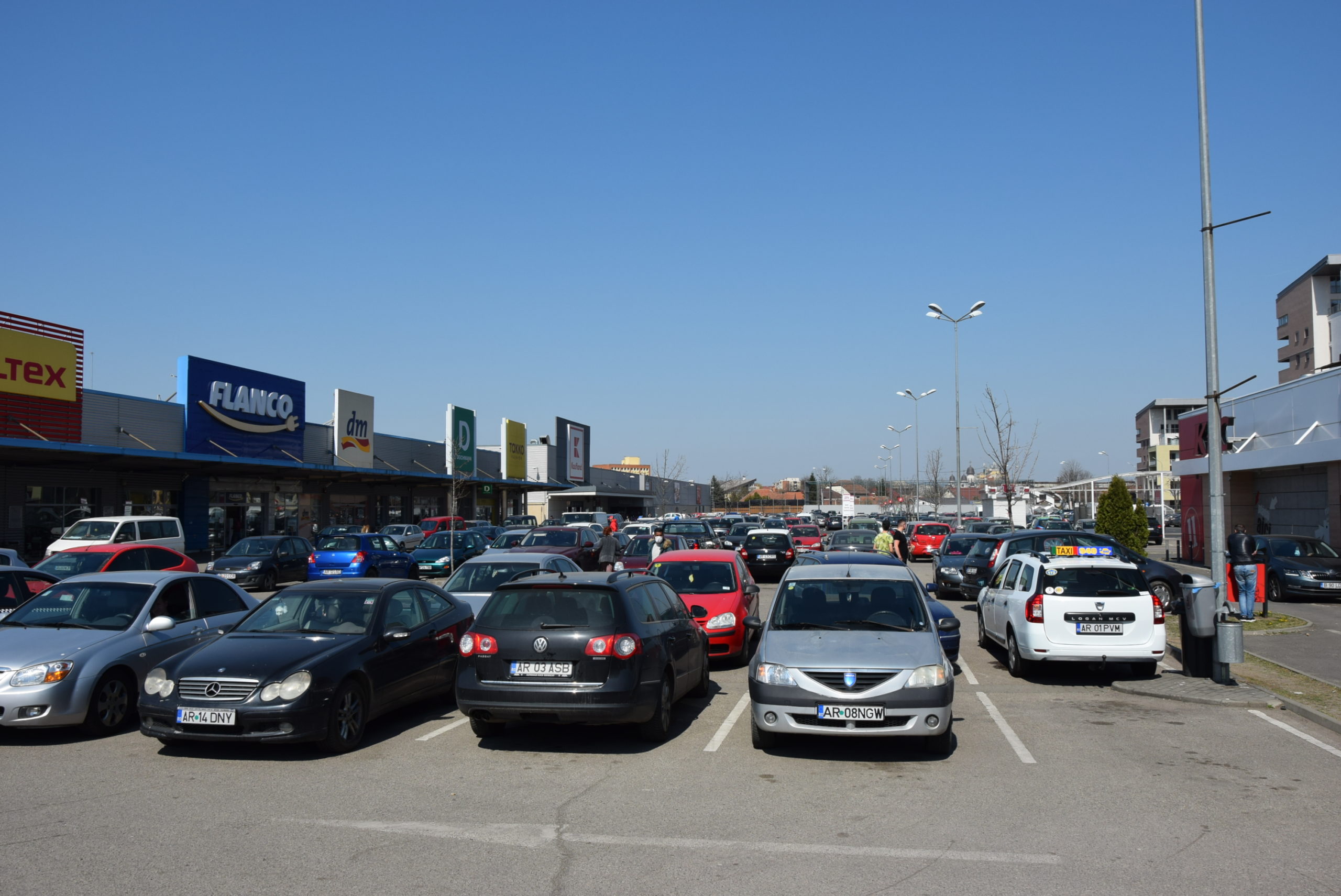 La supermarketul de lângă Stația CFR Arad erau puține autoturisme și puțini arădeni. În parcările de la supermarketurile de pe Calea Aurel Vlaicu, din nou, destul de multe mașini parcate, dar erau și destule locuri de parcare libere la ora la care au fost efectuate fotografiile.
