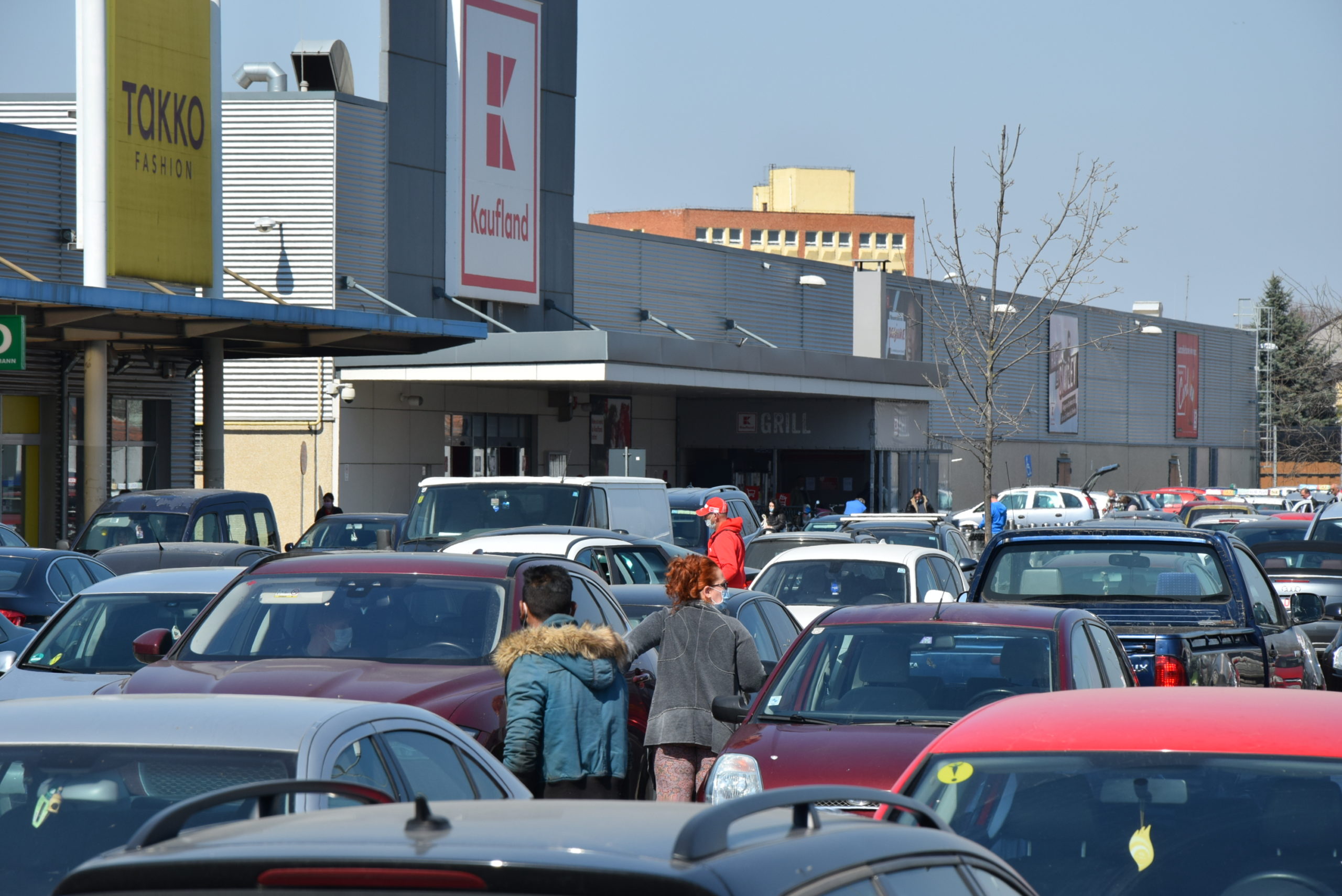 Am dorit să vedem cât de multe autoturisme sunt în parcările mai multor supermarketuri din orașul Arad, în contextul pandemiei, să luăm pulsul cumpărăturilor. Ne-am deplasat, ca atare, pe strada Banu Mărăcine, unde sunt mai multe supermarketuri în aceeași zonă, la supermarketul de lângă Stația CFR Arad, cât și la alte două situate pe Calea Aurel Vlaicu, sens de mers dinspre Fortuna înspre UTA.