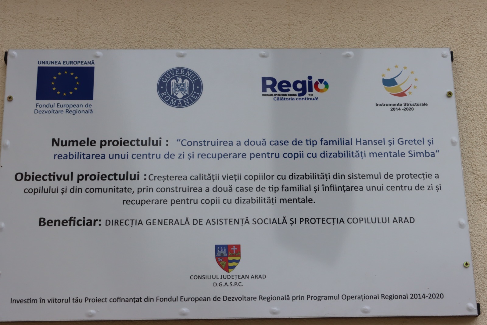 La finalul anului trecut, DGASPC Arad a finalizat implementarea proiectului „Construirea a două case de tip familial Hansel si Gretel și Reabilitarea unui centru de zi si recuperare pentru copii cu dizabilităţi mintale Simba”. Valoarea totală a proiectului este 5.217.162,99 lei (inclusiv TVA), din care finanţare nerambursabilă 4.614.986,97 lei (asigurată prin POR 2014-2020). Investiția în Centrul de zi şi recuperare pentru copii cu dizabilităţi mintale „Simba” se ridică la suma de 2.072.290,11 lei.