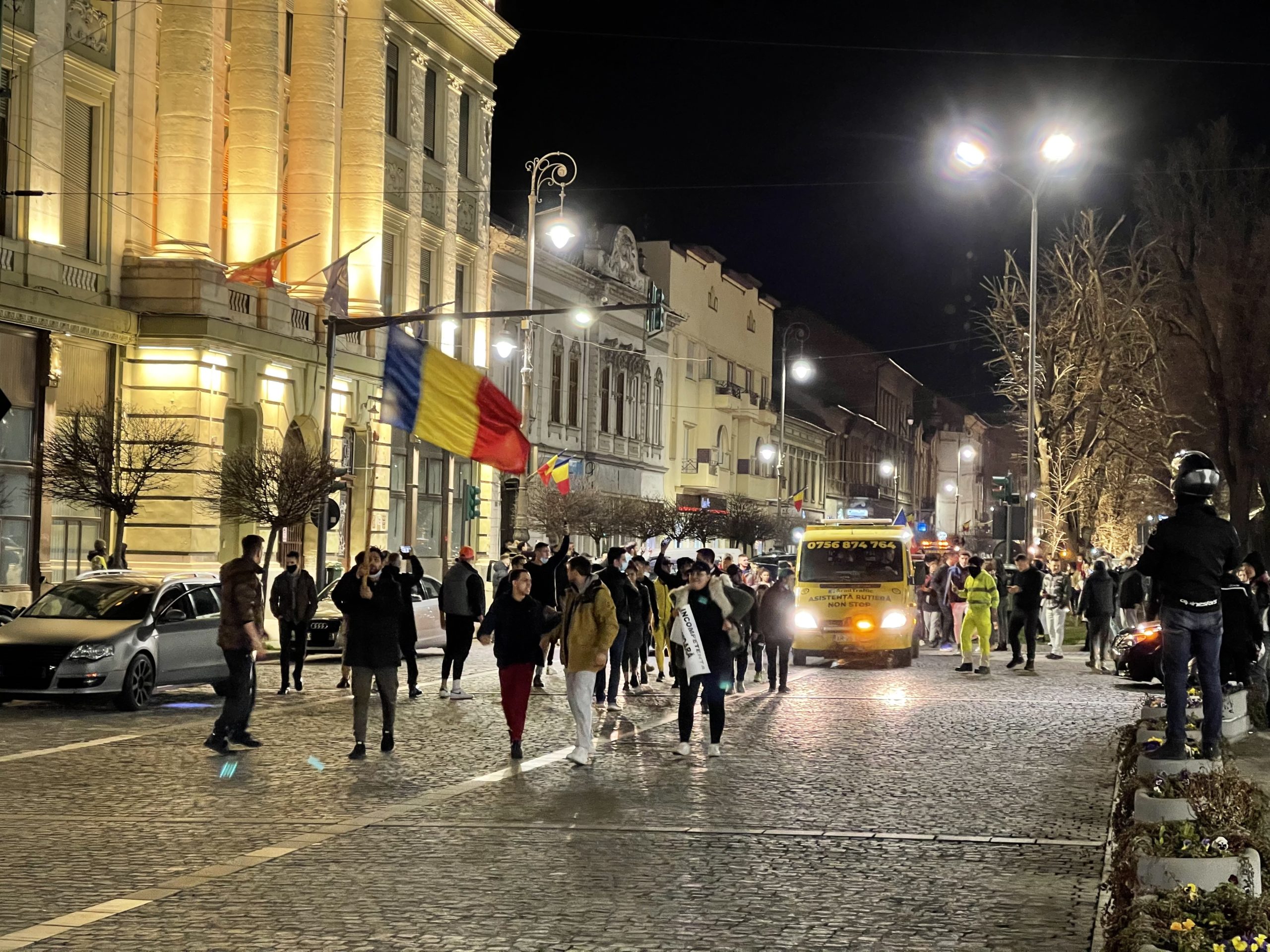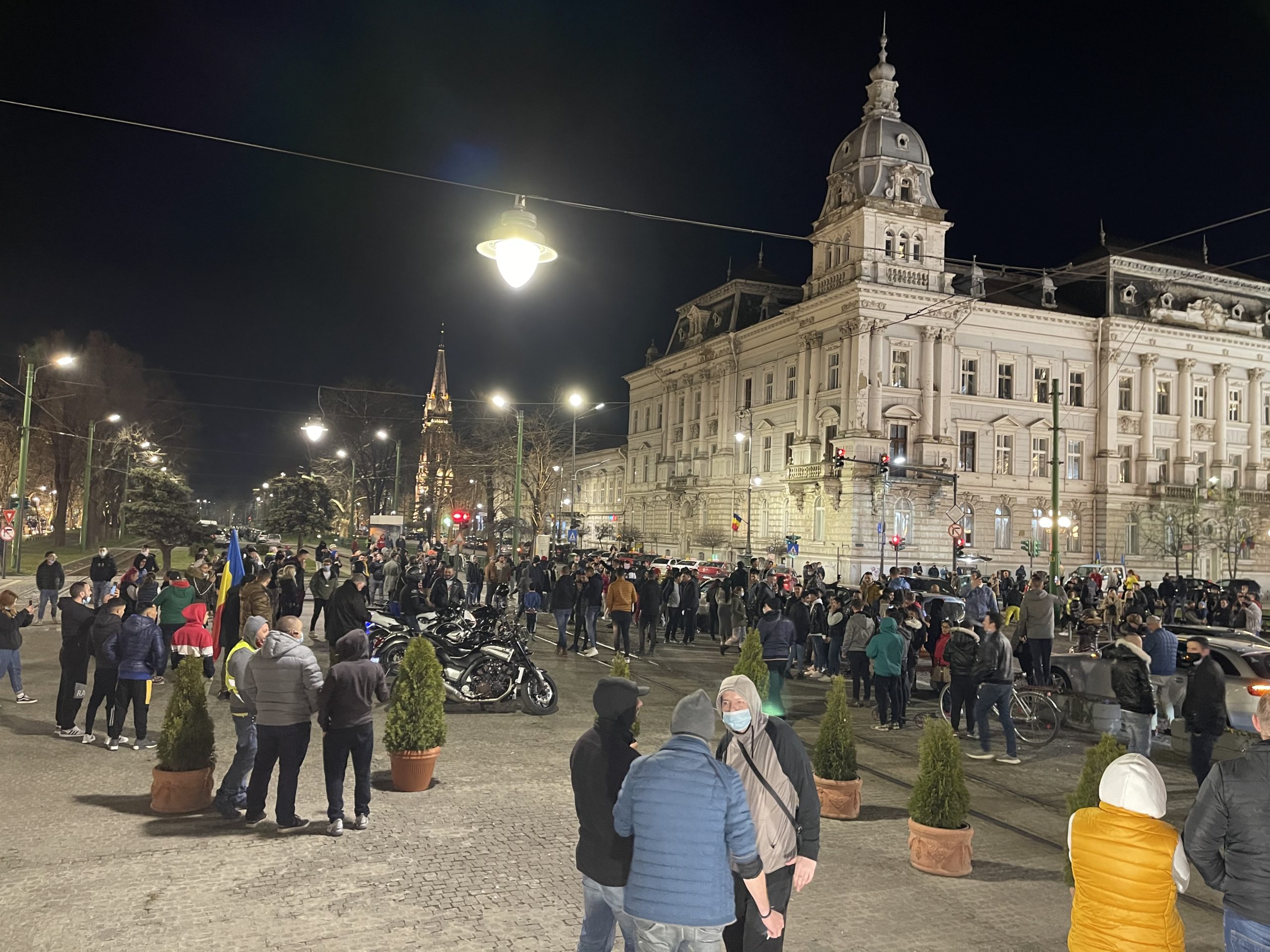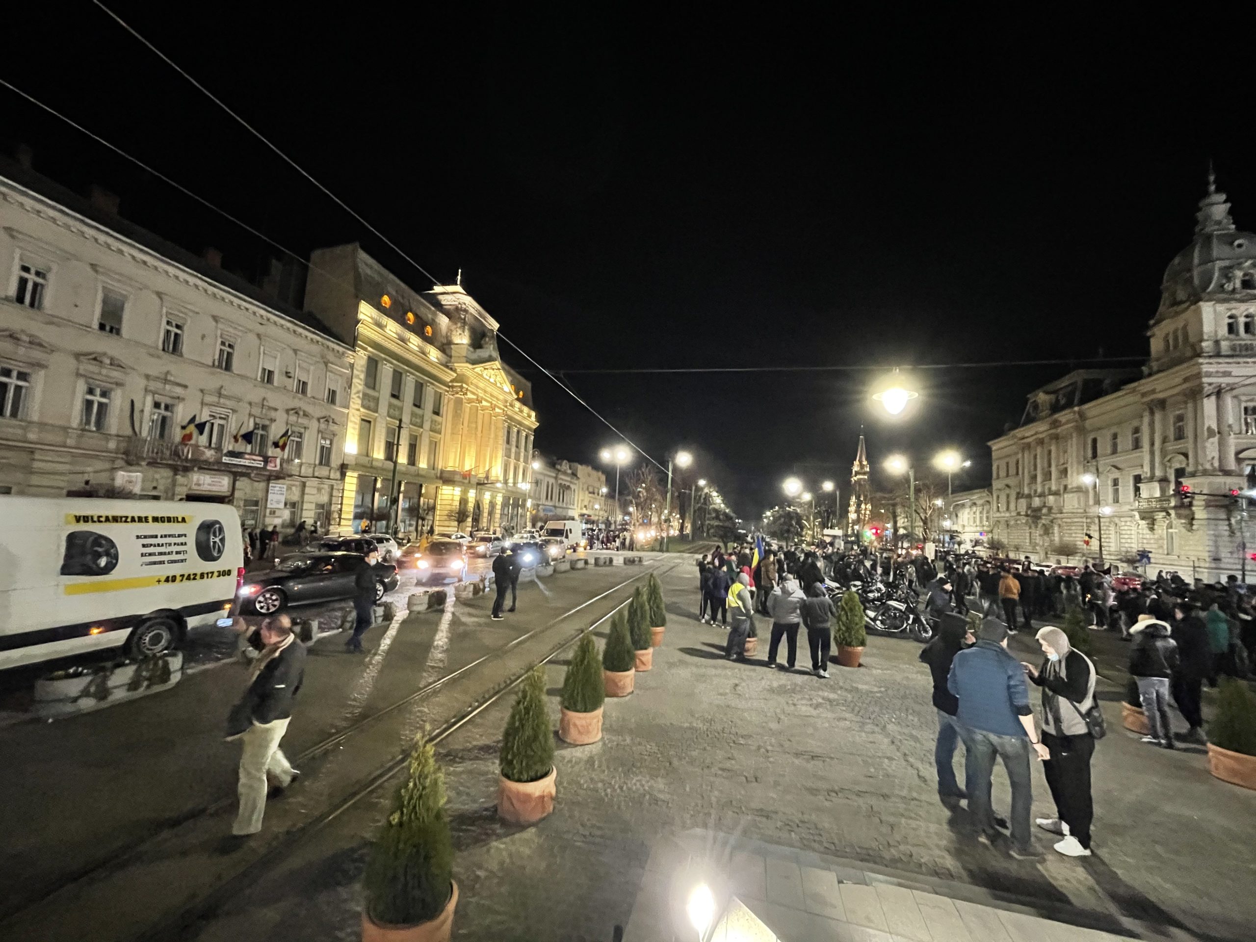 Ulterior, centrul orașului – în fața Palatului Administrativ -, a fost blocat, după ce tot mai mulți oameni s-au adunat la kilometrul zero. Ulterior, protestatarii s-au îndreptat, pe jos, înspre Podgoria, iar de aici spre Vlaicu.