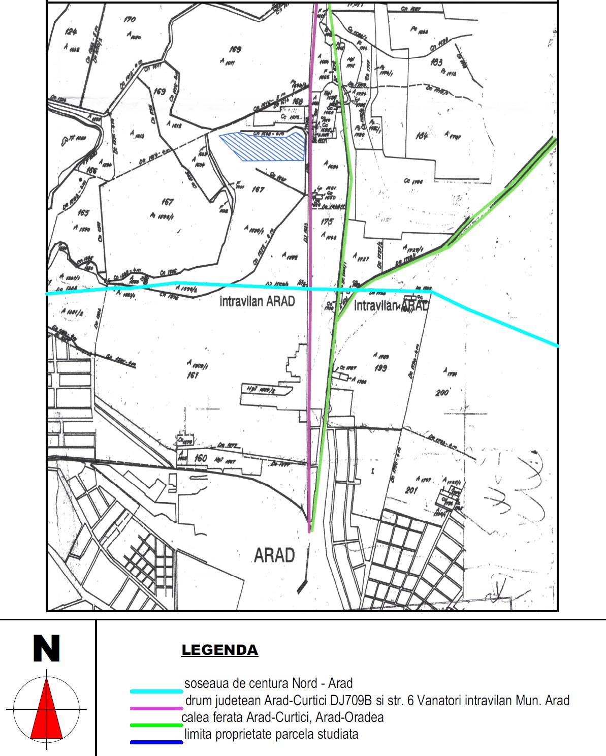 „Reglementările urbanistice vor ţine cont de funcțiunile existente edificate de pe parcelele imediat învecinate, situate la nord de acesta. În consecință, zonele propuse pentru servicii aferente cimitirului ortodox vor fi poziționate la nord, astfel încât funcțiunile similare de servicii vecine existente și propuse să fie compatibile. Accesul la incintă se va face de pe latura de est a incintei prin amenajarea unei intersecţii în [T] propuse cu DJ 709B, cu bandă de accelerare și decelerare pe sensul de mers dinspre Curtici spre Arad. La toate limitele terenului vor fi prevăzute căi circulație și zonă verde amenajată de protecție de aliniament. Astfel, zona destinată construcțiilor funerare (locuri de veci) va fi retrasă față de toate limitele de proprietate” – indică Studiul de oportunitate.