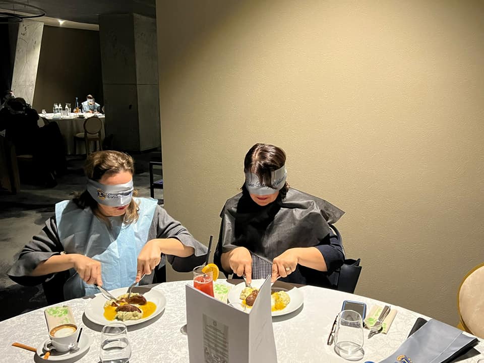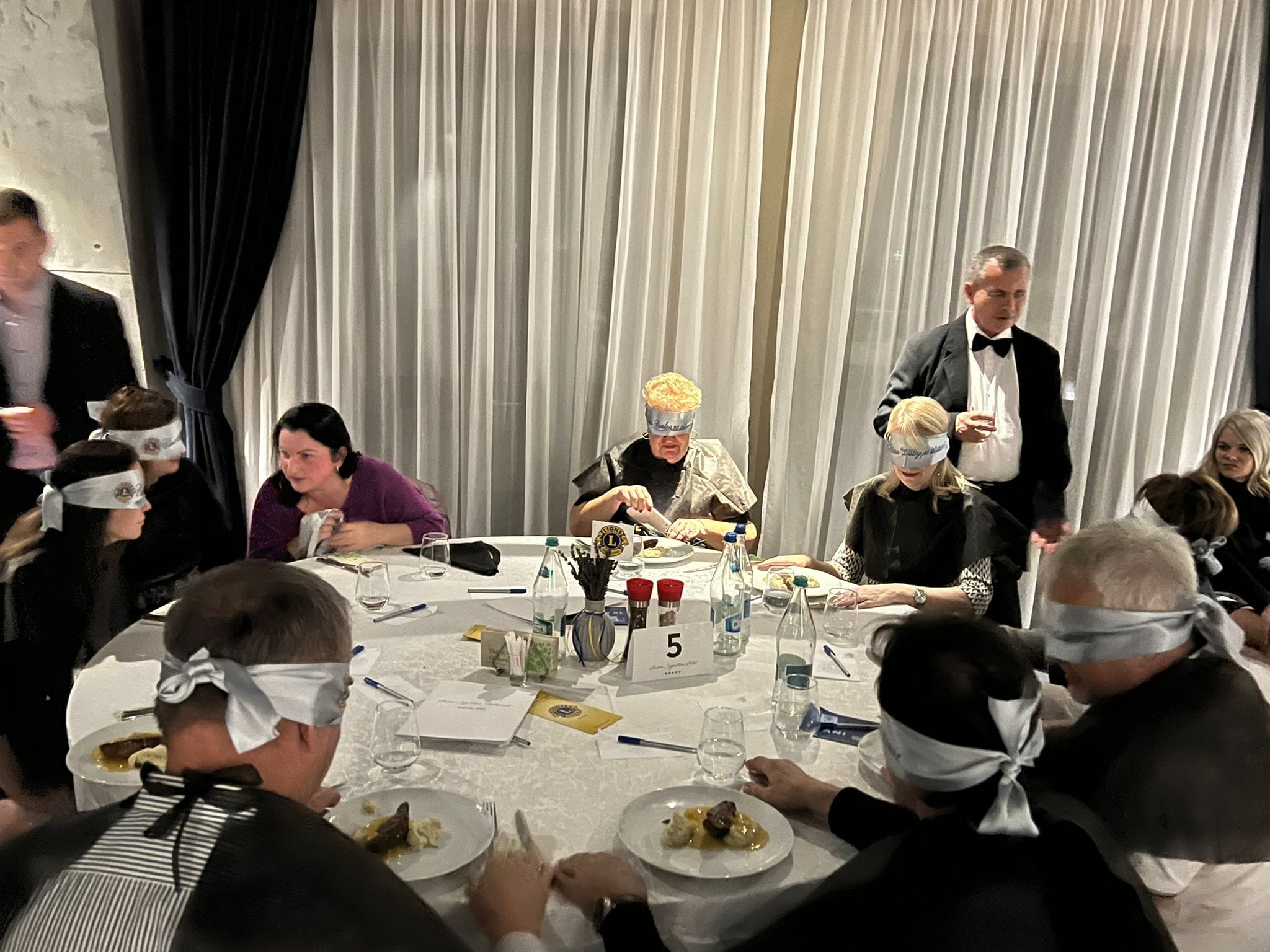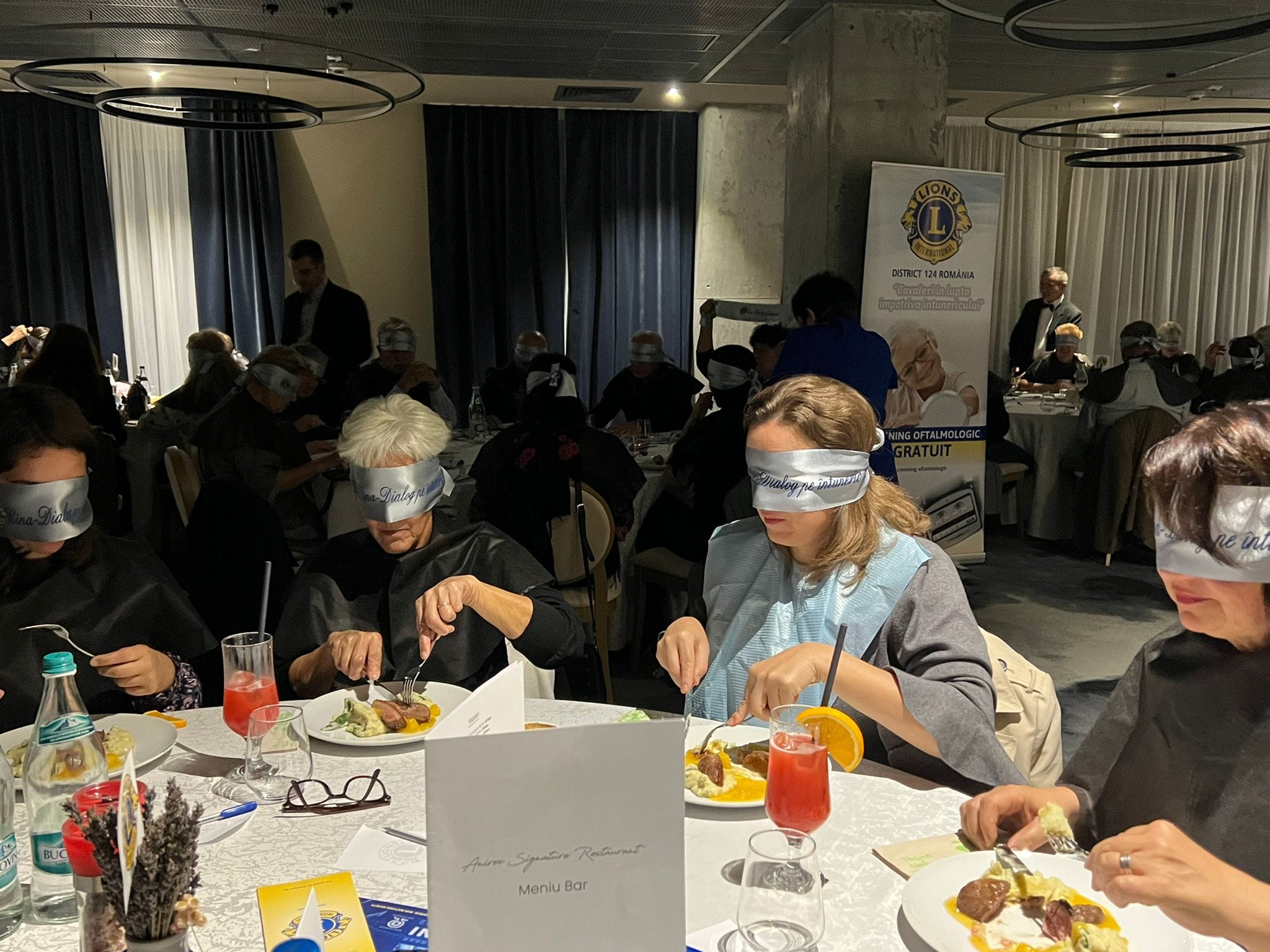 ARAD. Ajuns la cea de-a VI-a ediţie, evenimentul „Cina-Dialog în întuneric” s-a desfăşurat anul acesta, la ANIROC Signature Hotel. Tradiţionalul eveniment a fost organizat de Clubul Lions Arad 2007, pentru a marca Ziua Bastonului Alb. Alături de nevăzători, ceilalţi participanţi şi-au pus banderole la ochi pentru a experimenta lipsa văzului, unul dintre cele mai importante simţuri.