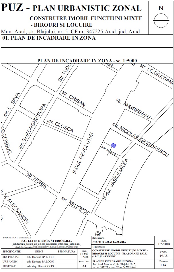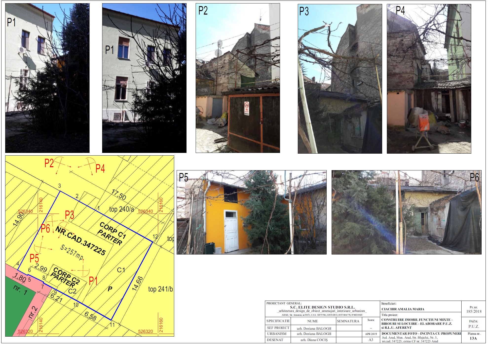 Iniţiator şi beneficiar al documentaţiei de urbanism este Ciachir Amalia Maria, planurile investiţiei fiind realizate de SC Elite Design Studio SRL. Parcela care face obiectul PUZ-ului are categoria de folosință „curți construcții în intravilan”, în suprafață de 257 metri pătraţi. Pe teren, la ora actuală se află 2 locuințe: una în suprafață de 111 metri pătraţi și alta în suprafață de 21 metri pătraţi.