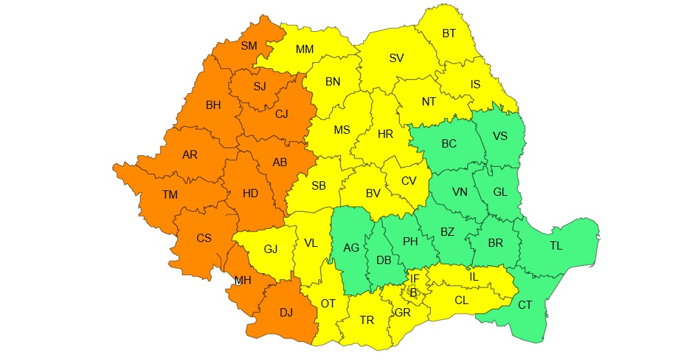 Conform prognozei de specialitate, Codul portocaliu va fi valabil între orele 12:00 – 21:00, în județele Satu Mare, Sălaj, Cluj, Bihor, Arad, Alba, Timiș, Hunedoara, Caraș-Severin și Mehedinți. În intervalul menționat în Banat, Crișana, în sud-vestul Olteniei și în vestul Transilvaniei, se vor înregistra temperaturi deosebit de ridicate pentru această dată, maximele se vor situa între 33 și 37 de grade. Disconfortul termic va fi accentuat, local va fi caniculă, iar indicele temperatură-umezeală (ITU) va depăși pragul critic de 80 de unități.