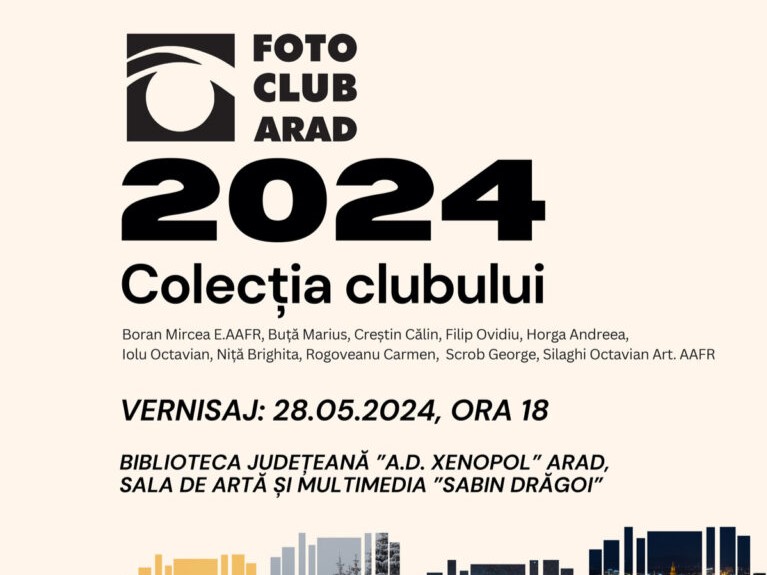 Expoziția va fi deschisă la Biblioteca Județeană „Alexandru D. Xenopol” Arad, Sala de Artă și Multimedia „Sabin Drăgoi”, iar în cadrul vernisajului se va vorbi despre fotografie, despre pasiune și artă, despre perspective și tehnici, despre valori și identitate vizuală, într-un dialog interactiv susținut de Mircea O. Boran E.AAFR, președinte al Asociației Foto Club Arad, și prof. drd. Ioana Nistor, curatori ai Salonului de Fotografie „Colecția Foto Club Arad 2024”.
