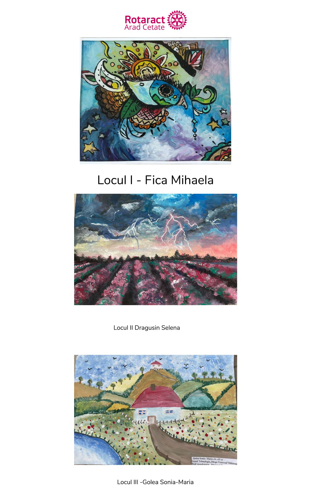 ARAD. Asociația Club Rotaract Arad Cetate, în parteneriat cu Inspectoratul Şcolar Judeţean Arad, Parcul Natural Lunca Mureșului, Interact Arad Cetate și Consiliul Judeţean al Elevilor Arad au organizat în perioada 14-31 mai 2021 concursul județean de ecologie și creație artistico-plastică: ,,Colț de natură cu surâs copilăresc”. Concursul și-a propus să crească interesul copiilor din județul Arad, dezvoltându-le imaginația și abilitățile de exprimare grafică.
