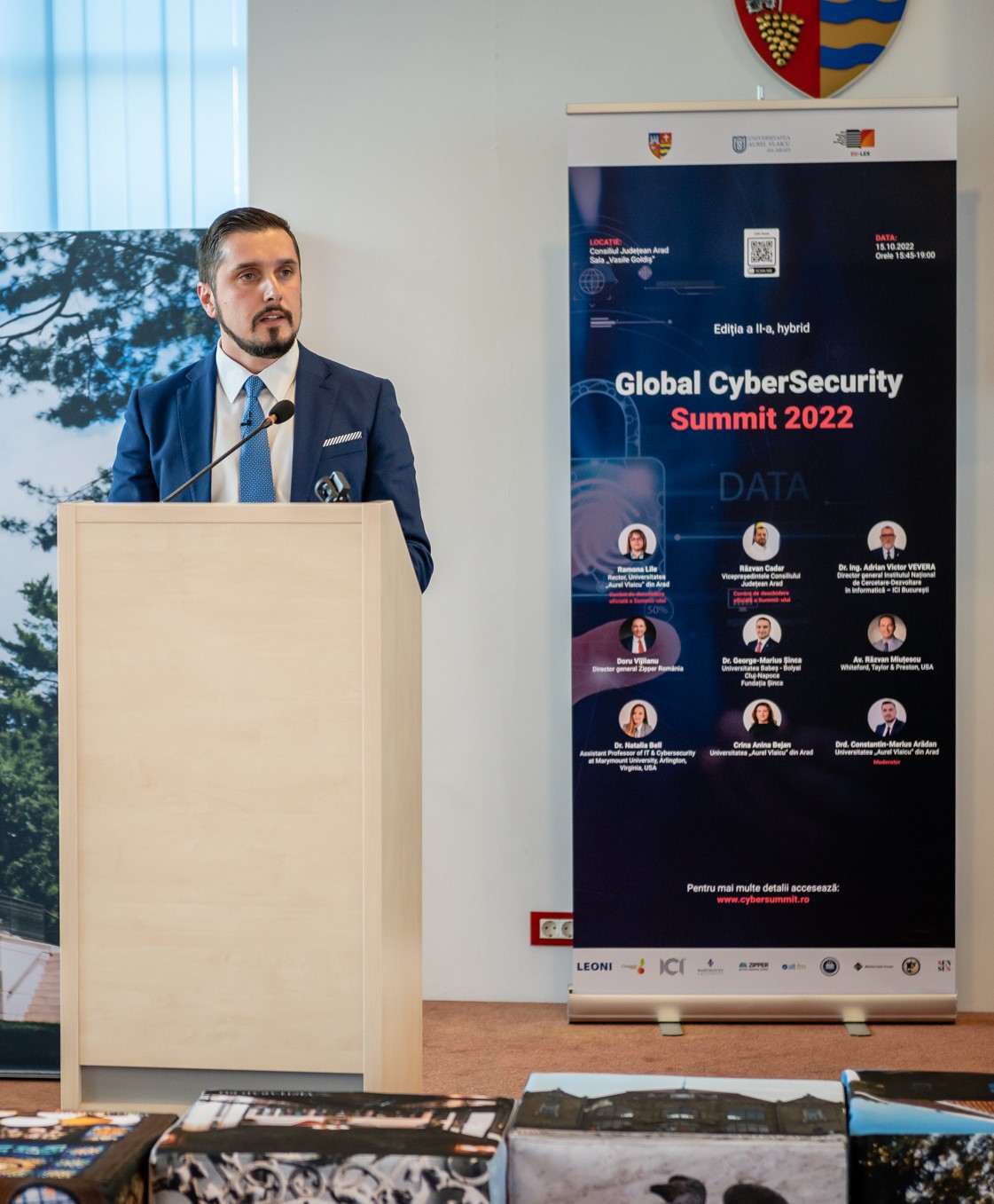 Arad. În acest final de săptămână, la Arad, a avut loc conferința internațională „Global CyberSecurity Summit 2022”, un eveniment organizat de Asociația EU-LEX, în parteneriat cu Universitatea „Aurel Vlaicu” din Arad și cu susținerea Consiliului Județean Arad.