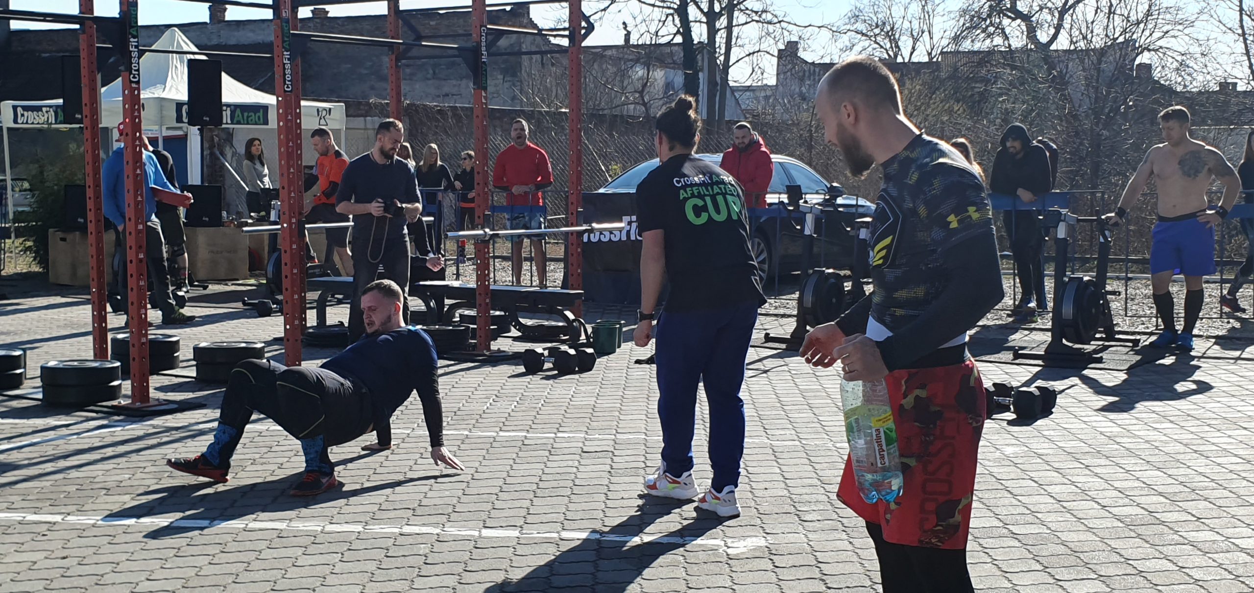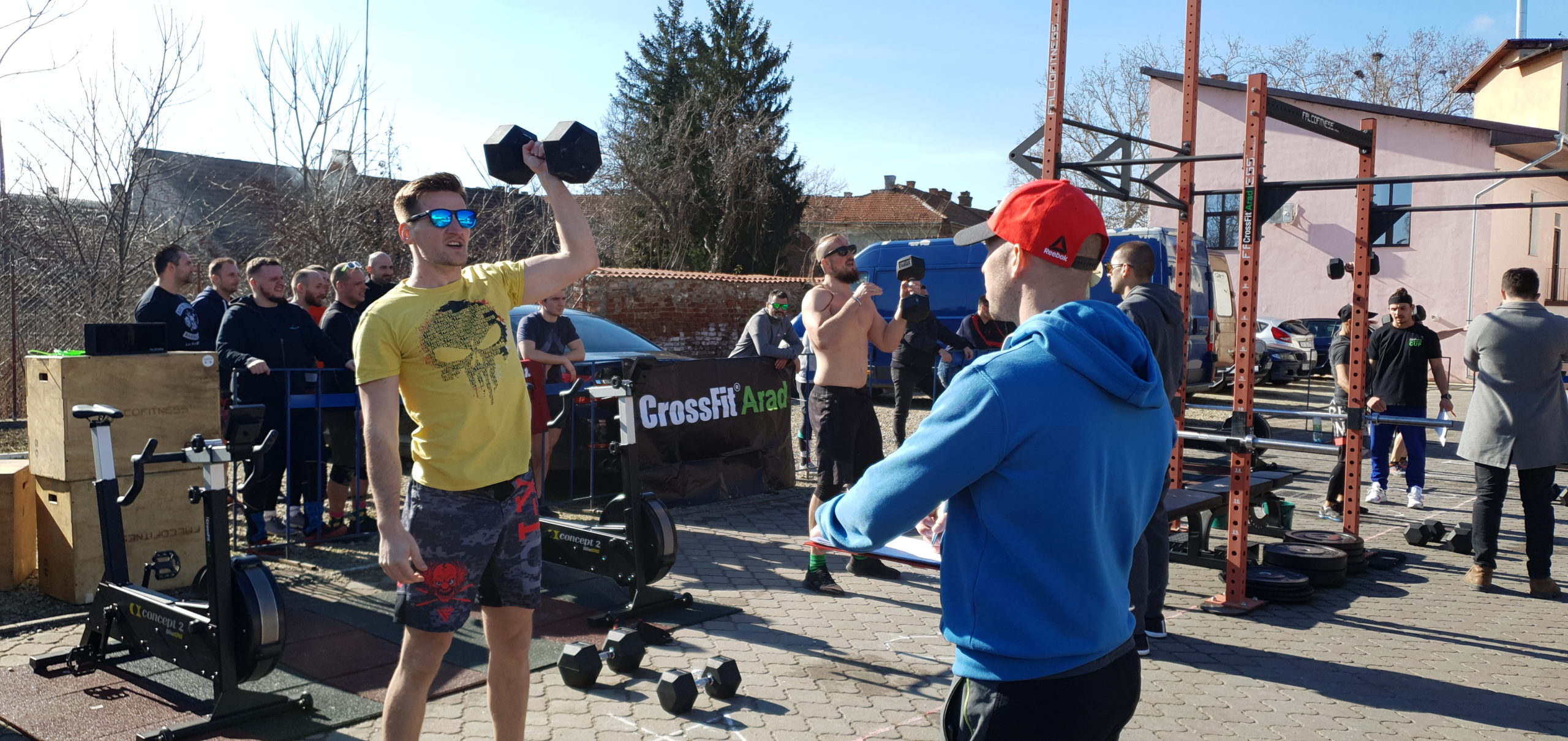 Prima ediţie a concursului „CrossFit Arad Affiliated Cup”, organizat de Asociația Sportivă CrossArad, a fost în fapt a doua întrecere de anvergură din acest sport organizată în orașul nostru, după cea din vara anului trecut, în Piața Avram Iancu, Transylvania Throwdown, competiție care i-a avut ca organizatori pe aceiași Radian Carp și Alex Trînc.